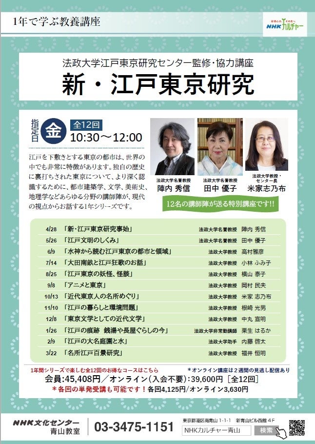 【NHKカルチャー】法政大学江戸東京研究センター監修・協力講座「新・江戸東京研究」1年シリーズが始まります!