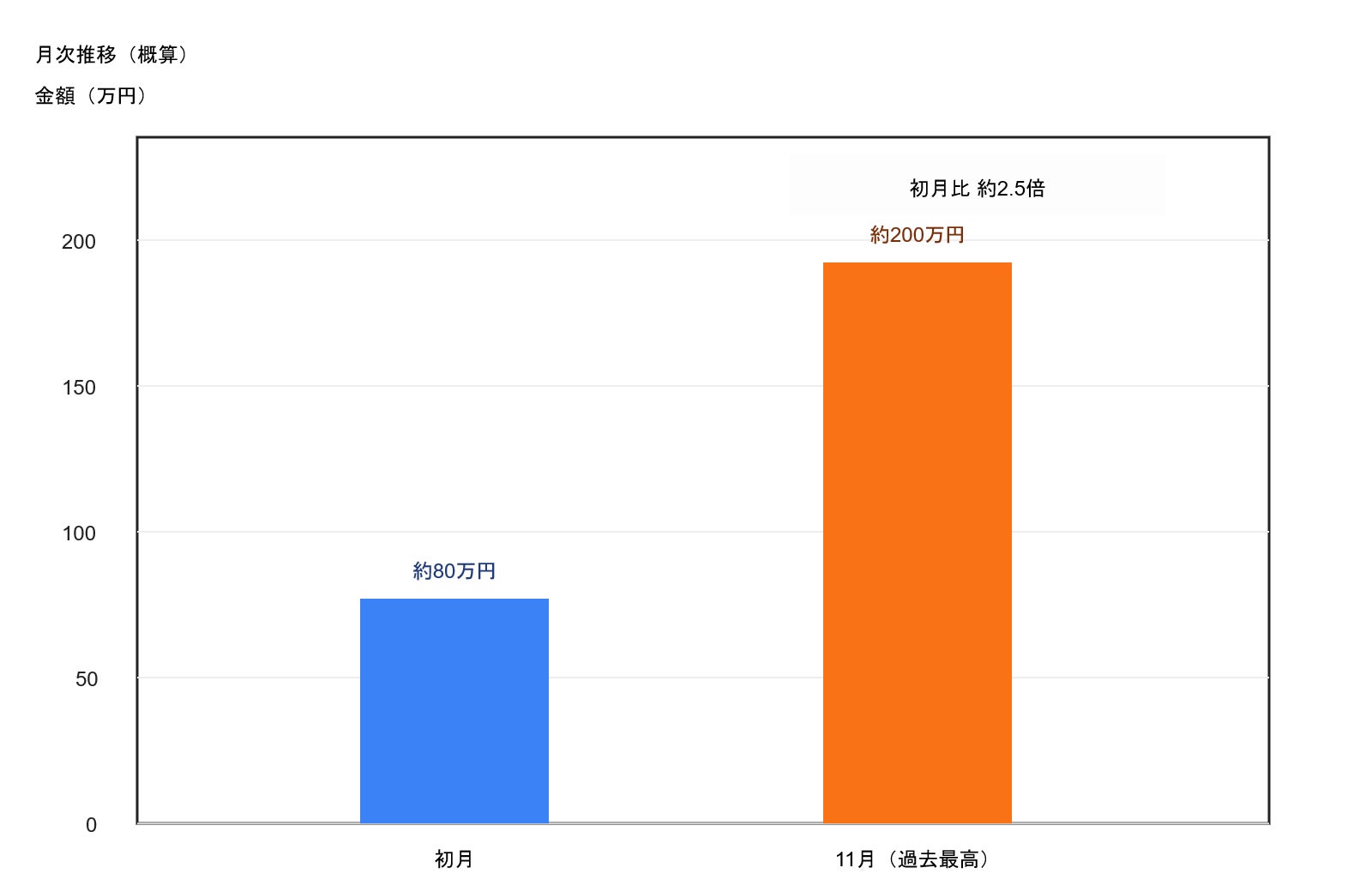 初月は約80万円、11月は約200万円で、初月比 約2.5倍に到達しました。