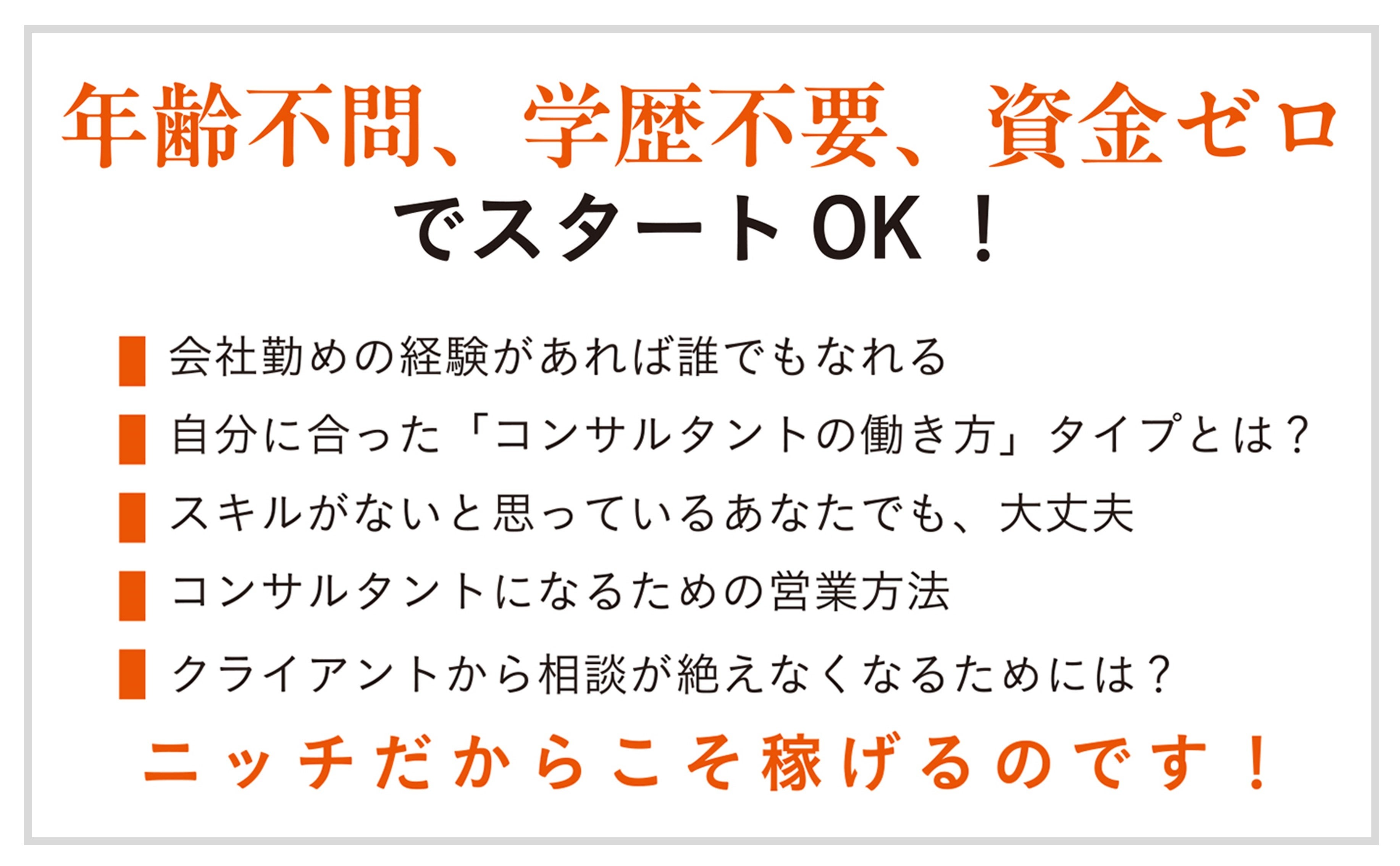 年齢不問、学歴不要、資金ゼロでスタートOK!『ニッチで稼ぐコンサルの教科書 40代から始める一生モノの仕事』発売
