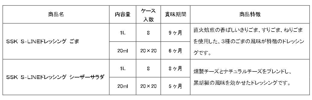 エスエスケイフーズ株式会社(本社:静岡市葵区)は、日頃ご愛顧いただいている業務用商品の「SSK S‐LINEドレッシング ごま」、「SSK S‐LINEドレッシング シーザーサラダ」の2品を、さらにおいしくリニューアルいたします。
