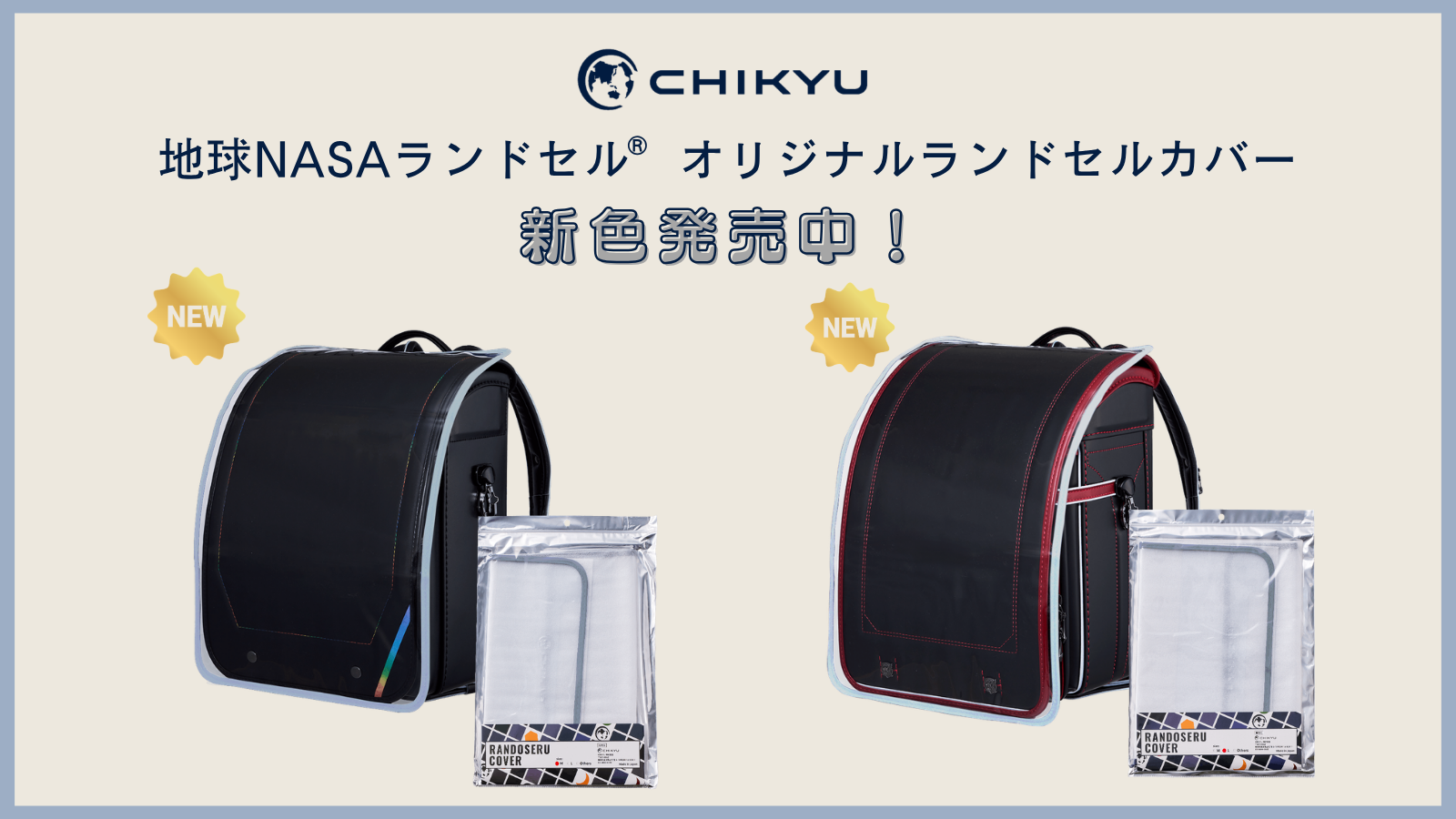 CHIKYUオリジナルランドセルカバーに新色「グレー(ふち)」が2サイズ展開で新登場!