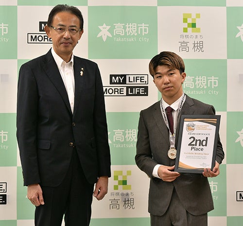 高槻市出身の天野直輝さんがストリートダンスアジア大会準優勝を市長に報告