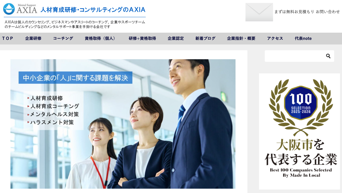 一般社団法人クレア人財育英協会(代表理事:酒井康博/東京都千代田区)の提携代理店である株式会社AXIA(代表取締役:衣川竜也/大阪市北区)が、このたび『大阪市を代表する企業100選』に選出されました。AXIAは、公認心理師による心理支援を軸に、心理学・脳科学の知見を取り入れた人材育成や職場改善に取り組んできた企業です。