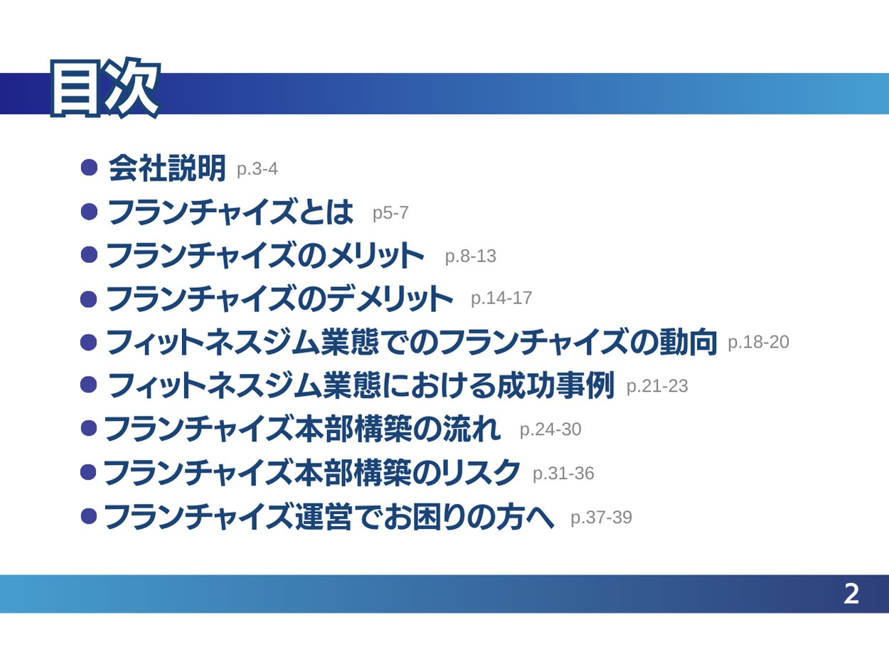 本レポートでは、フィットネスジム経営者向けにフランチャイズの基本的な仕組み、メリットとデメリット、本部を構築する際の流れやリスクについて解説し、フランチャイズビジネスを始めるために必要な情報や注意点を紹介いたします。