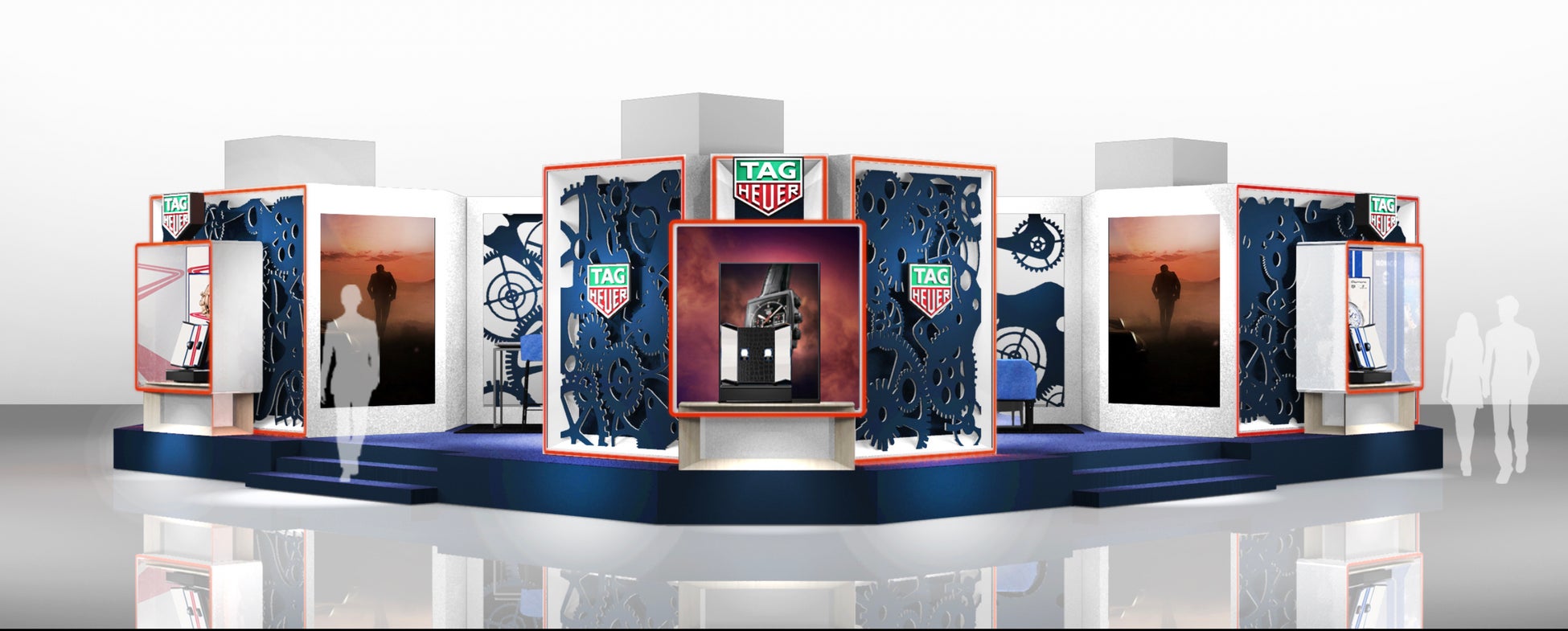 「タグ・ホイヤー コンセプト スタジオ」は、ブランドの162年にわたる時計製造のノウハウと高精度、高性能、革新性への飽くなき追求を象徴する特別なイベントスペースです。モータースポーツをイメージしたカラーと時計のメカニズムから着想を受けたデザインで、タグ・ホイヤーのアヴァンギャルドな世界観とモーターレーシングとの繋がりの深さを表現しました。