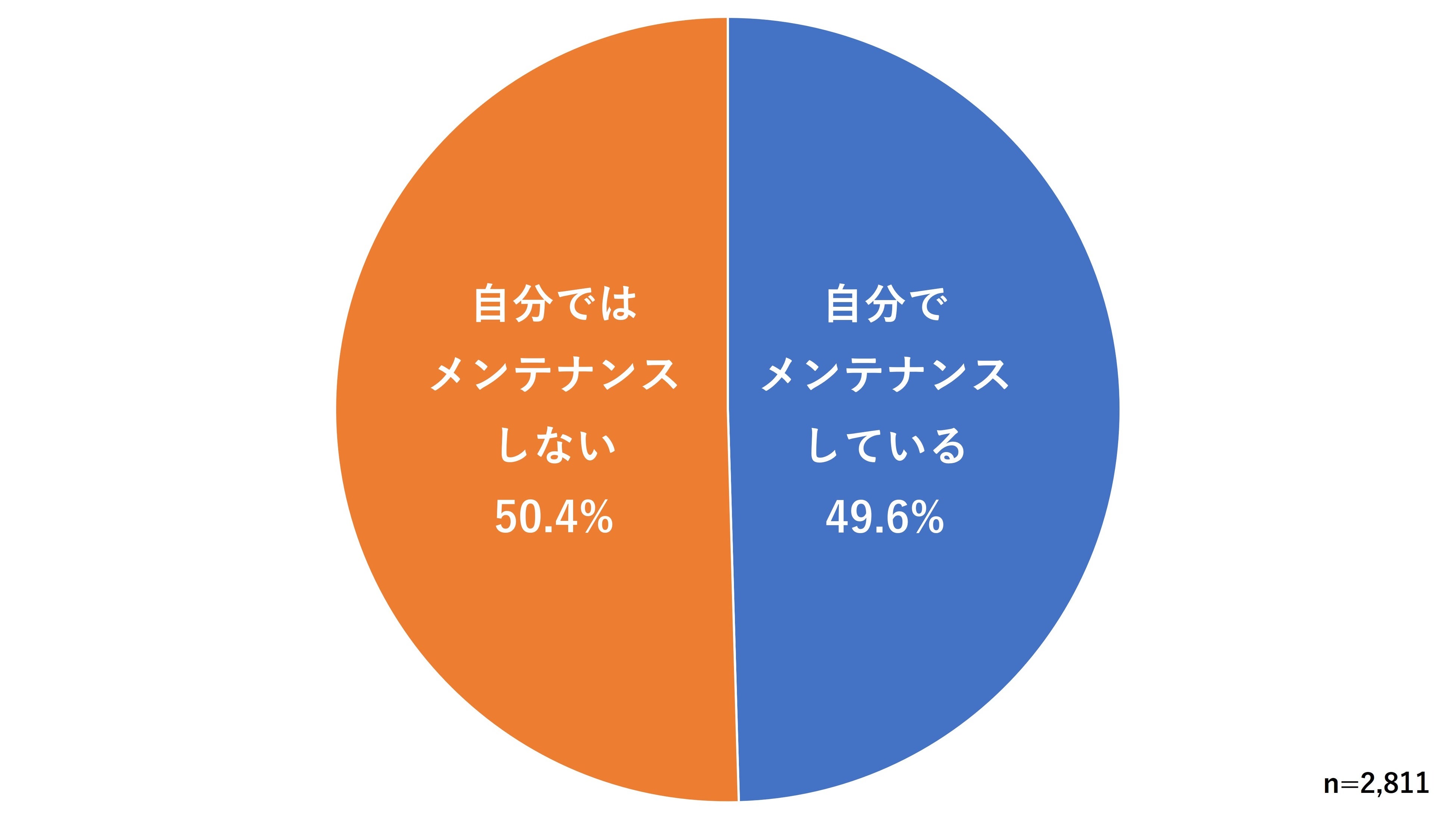 普段車を運転する機会があると回答した人のうち、普段運転する車について、自身で車のメンテナンスを行っていると回答した人は49.6%でした。