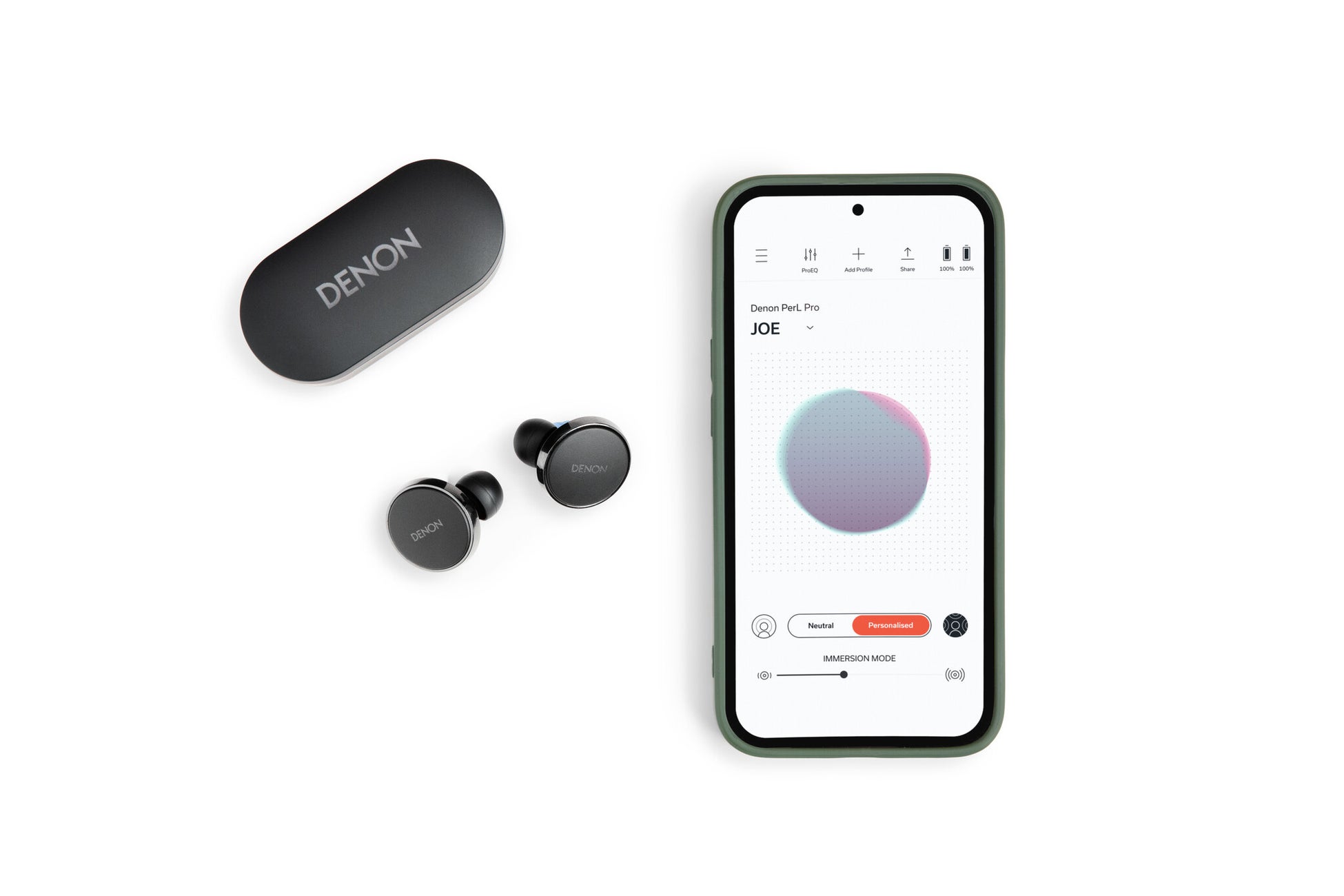 視覚や味覚が人によって異なるように、音の聴こえ方も1人1人異なります。つまり、同じ音を聴いていても、それぞれが知覚する音は実は異なるものだったということです。PerLシリーズは、いずれも最新のイノベーションであるMasimo AAT™ (Adaptive Acoustic Technology™)を搭載しており、ユーザー1人1人の聴こえ方に最適化された専用のリスニングプロファイルを作成し、すべてのユーザーに最良のデノンサウンドをお届けします。視力に合わせて眼鏡をオーダーメイドするように、イヤフォンのサウンドも個々のユーザーの聴こえ方に合わせてカスタマイズできる時代がやってきました。