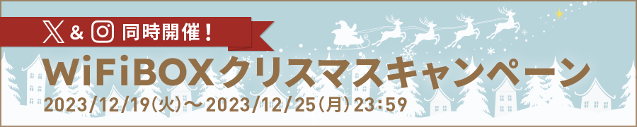WiFiBOXは、サービス開始2年目に突入した2023年も、おかげさまで多くの方にご利用いただくことができました。今回、日頃のご愛顧に感謝の気持ちを込めて、WiFiBOX公式SNSにてクリスマスキャンペーンを実施いたします。公式X(旧Twitter)およびInstagramにて同時開催となり、どちらのキャンペーンにもご参加いただけます。
