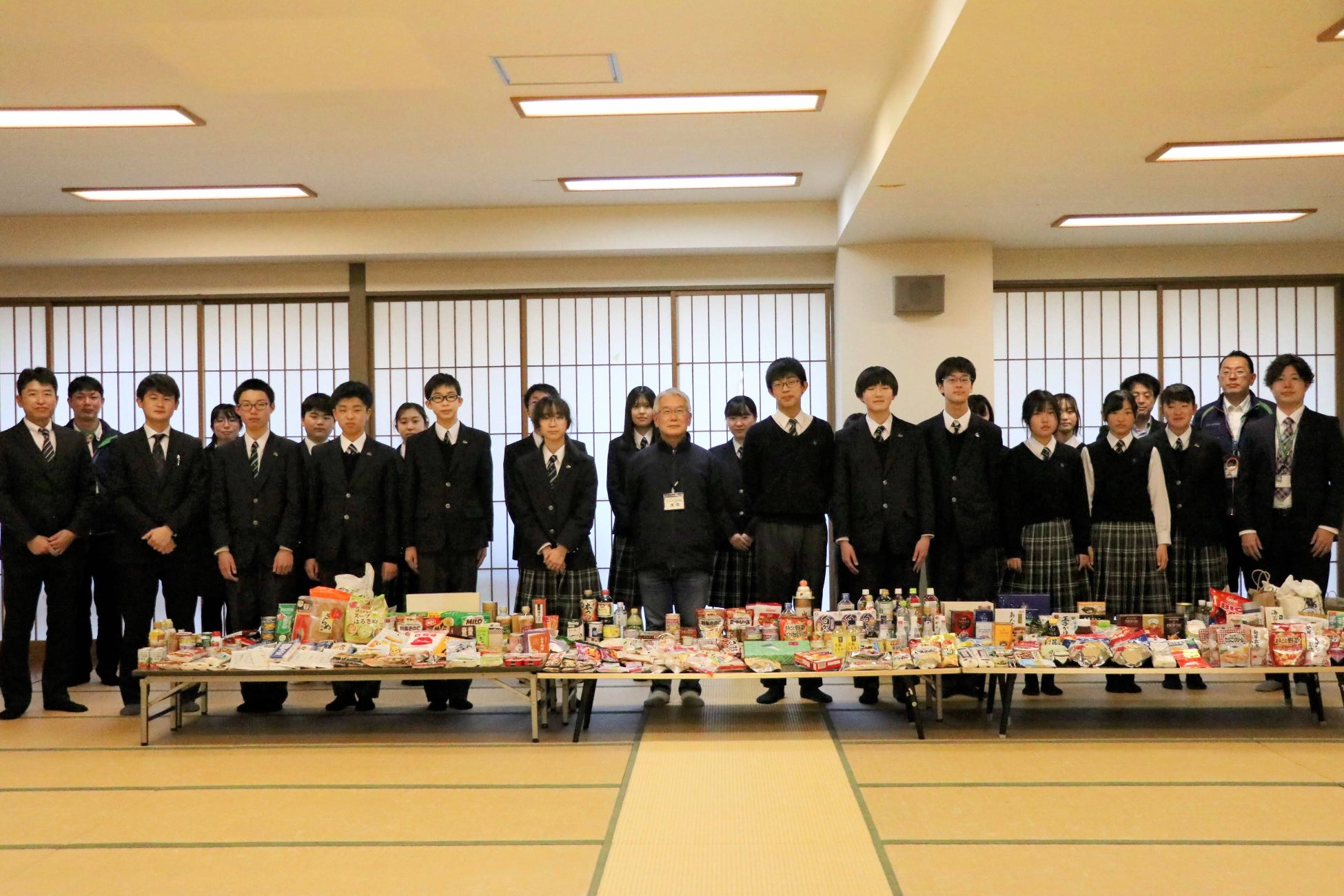 寄贈式では、四ツ葉学園と高崎市立倉渕中学校の生徒たちが呼びかけて集めたフードドライブ提供品と一緒に、群馬県、前橋市、バニーズ群馬FCホワイトスター、パルシステム群馬が集めた食品を県内のNPO法人三松会 フードバンク北関東(館林市、塚田一晃理事長)へ手渡します。生徒をはじめとする6者の参加団体は取り組みを報告し、三松会は提供品の活用などを説明します。