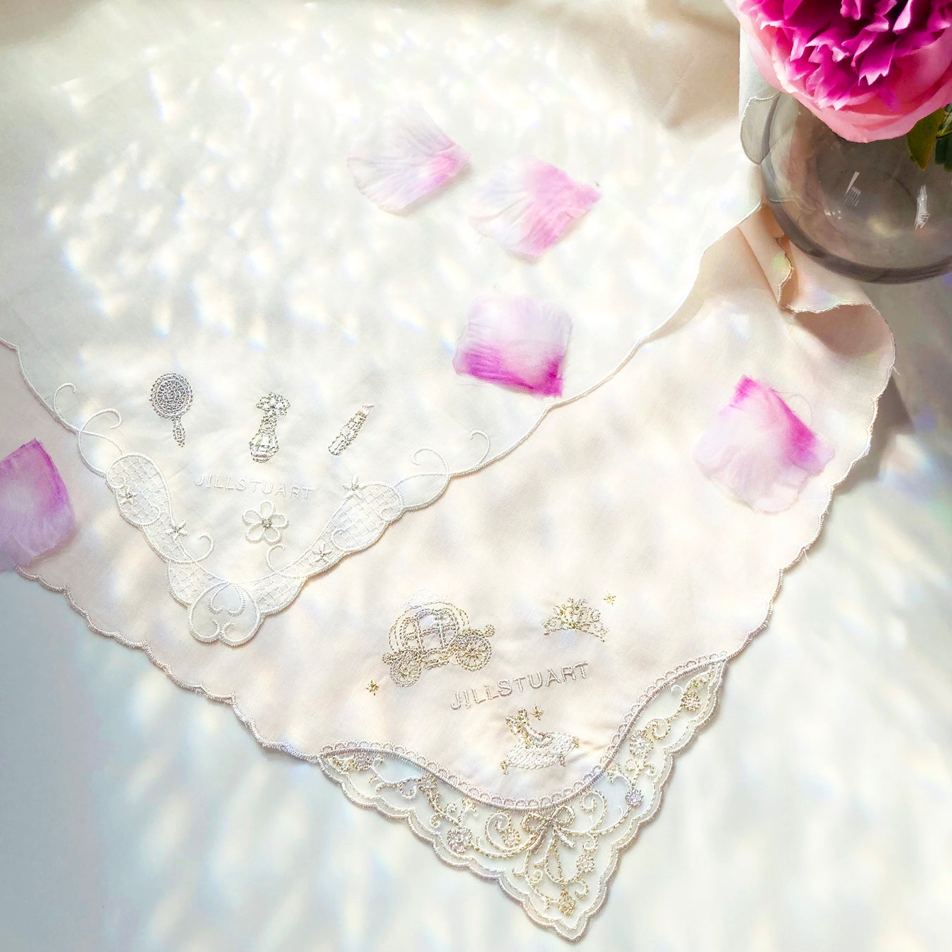 ●刺繍ハンカチ コスメ柄、コーナーレース付き 各¥1,320(税込)