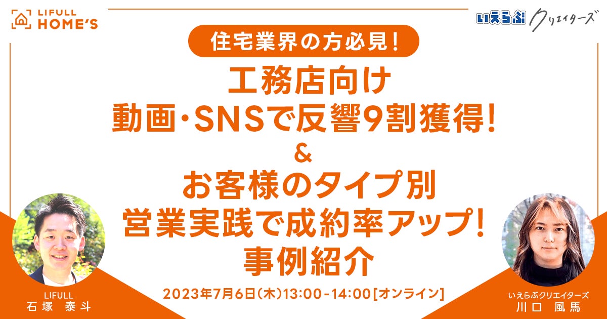 7/6(木)LIFULL HOME'S主催セミナーに、いえらぶクリエイターズ代表川口が「工務店向けのSNS活用」をテーマに登壇