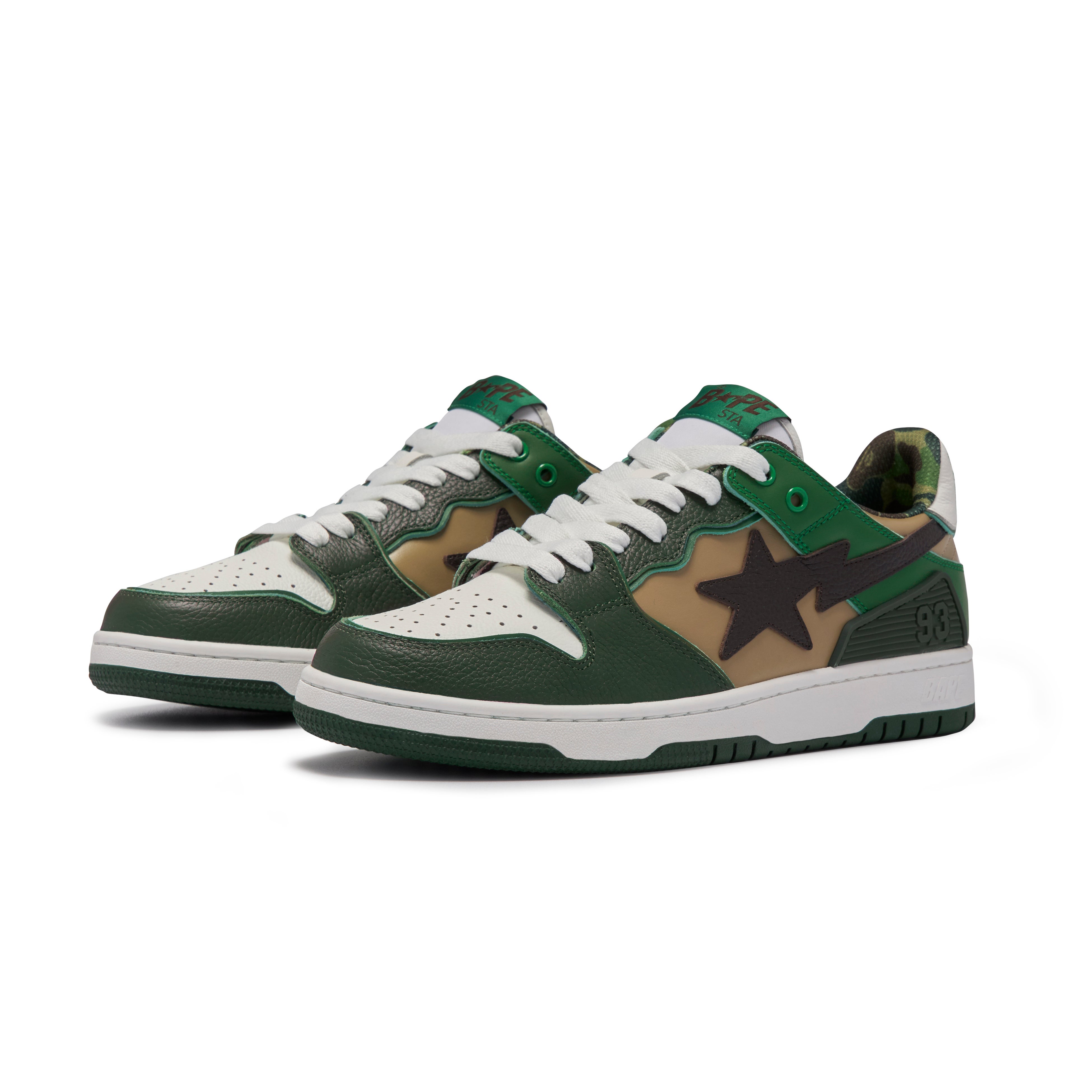 本コレクションは、ABC CAMOのメインカラーに合わせたグリーン、ブルー、レッドの3色展開。シューズ本体のデザインは、BAPE STA™でお馴染みのシェイプを巧みに使い、BAPE®︎ CAMOを反映させたカラーリングとなっています。