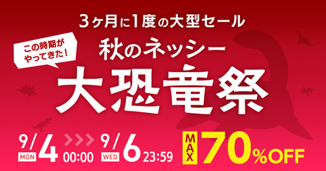 仕入れモールNETSEA、3ヶ月に一度の大型セール「秋の大恐竜祭」を9/4から3日間開催!