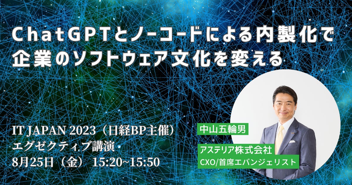 Business Executive Forum「IT Japan 2023」にCXO中山五輪男が登壇!ChatGPTとノーコードによる内製化でソフトウェア文化を変える!