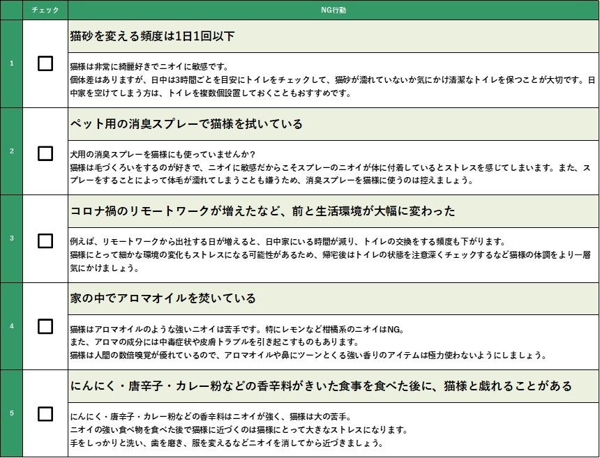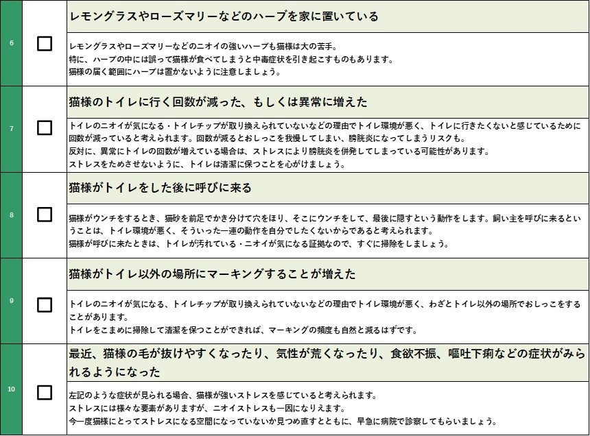 猫様もニオイに敏感!獣医監修「ニオイストレスチェックシート」