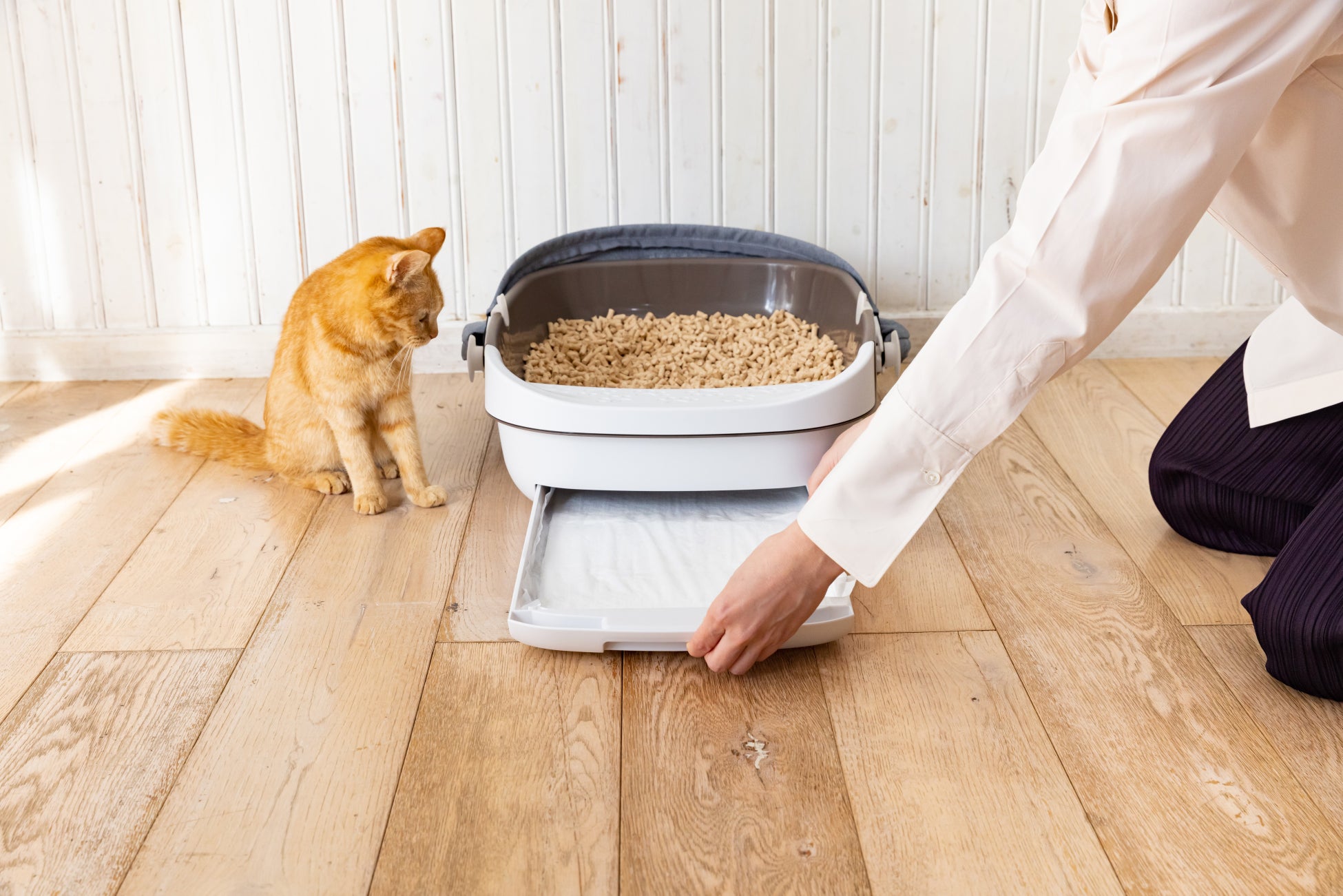猫ちゃんのトイレのニオイに効果の高い北海道産モミの木(トドマツ)の粉体を配合し、消臭力との共同開発により圧倒的消臭効果を実現、リビングに置いてもニオイが気にならずに安心して使うことができます。