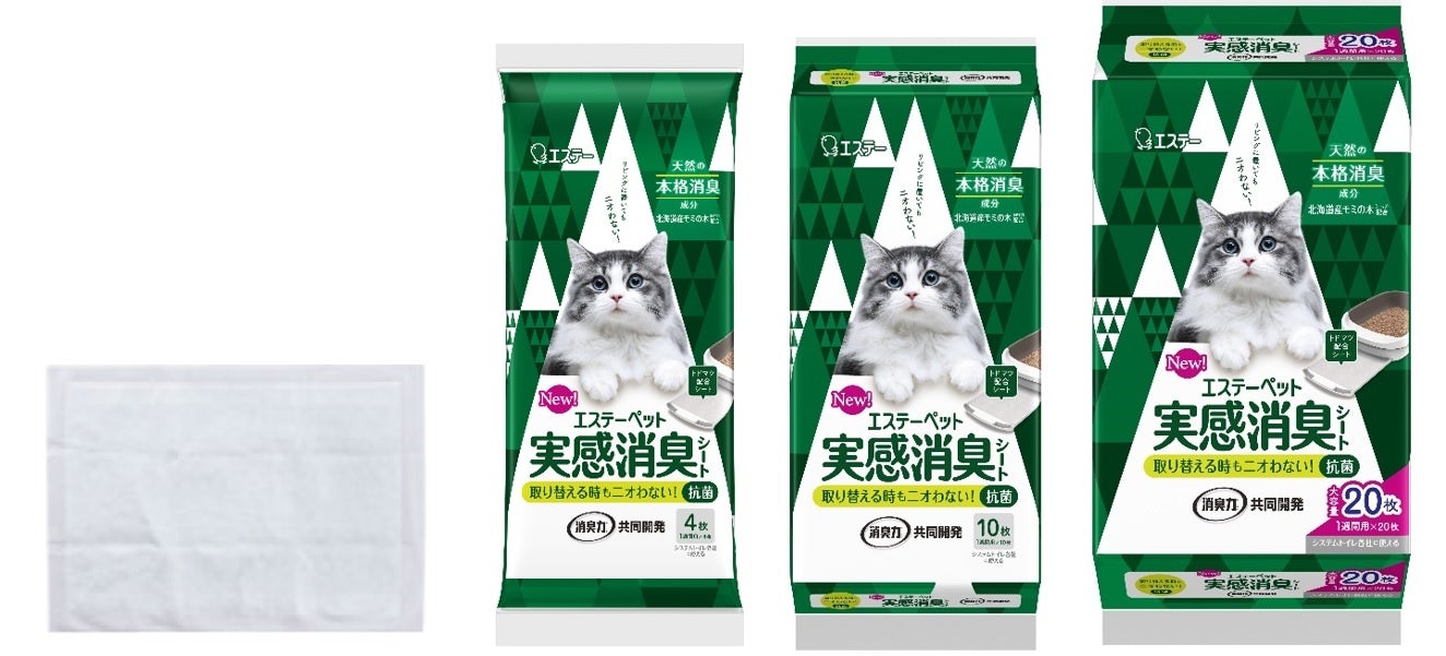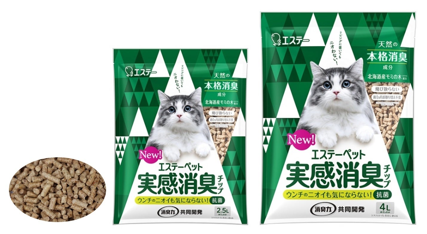 エステーは「エステーペット」ブランドの第一弾として、猫用システムトイレ「エステーペット 実感消臭本体セット」、「エステーペット 実感消臭チップ(2アイテム)」、「エステーペット 実感消臭シート(3アイテム)」をそれぞれ2月22日から全国のホームセンター、ドラッグストア、ネットショップなどで新発売します。価格はすべてオープンとなりますが、店頭での実勢価格は税込み547円前後~8,778円前後となります。