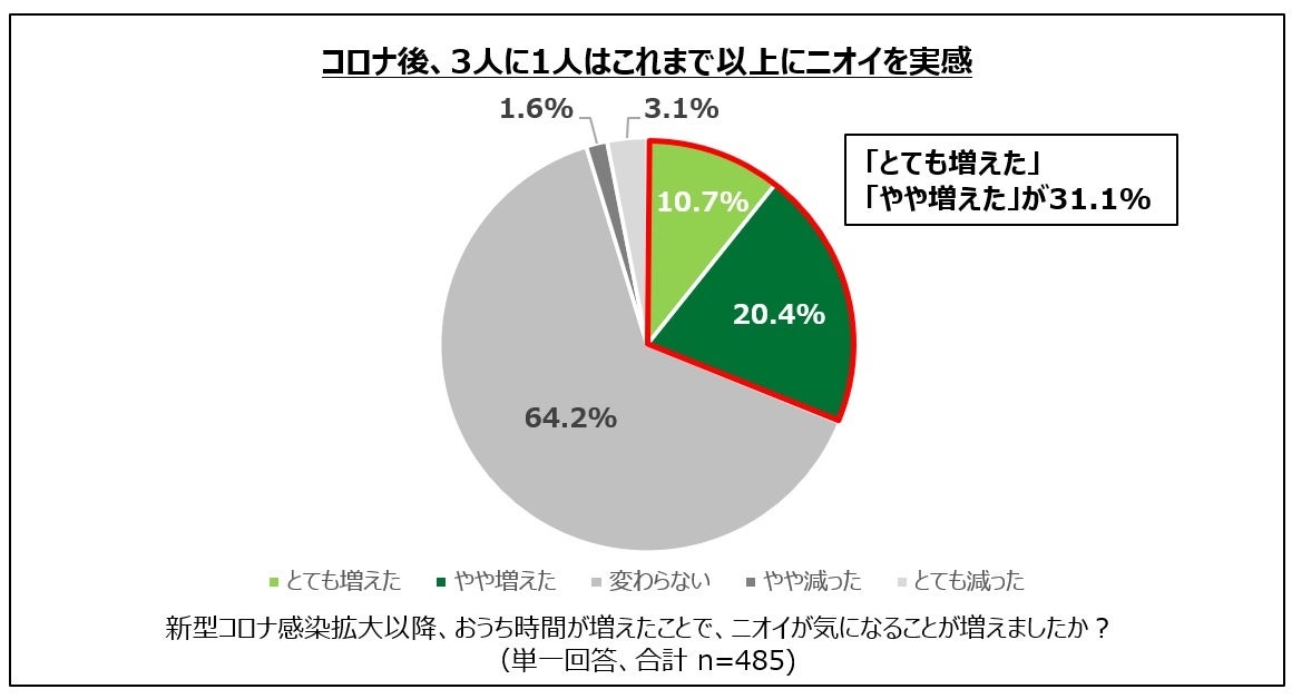おうち時間の増加でニオイ問題が深刻化!3人に1人がこれまで以上にニオイを実感。