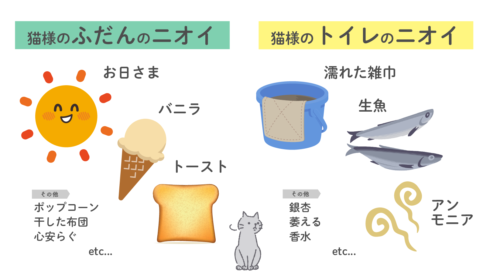 普段の猫様は「お日さま」「バニラ」、一方猫様のトイレは「濡れた雑巾」のニオイ!?
