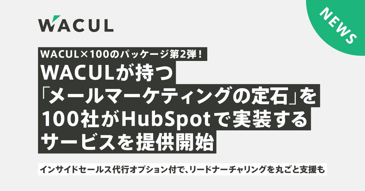 WACULが持つ「メールマーケティングの定石」を、100社がHubSpotで実装するサービスを提供開始。同時にインサイドセールス代行のオプションも選択可能
