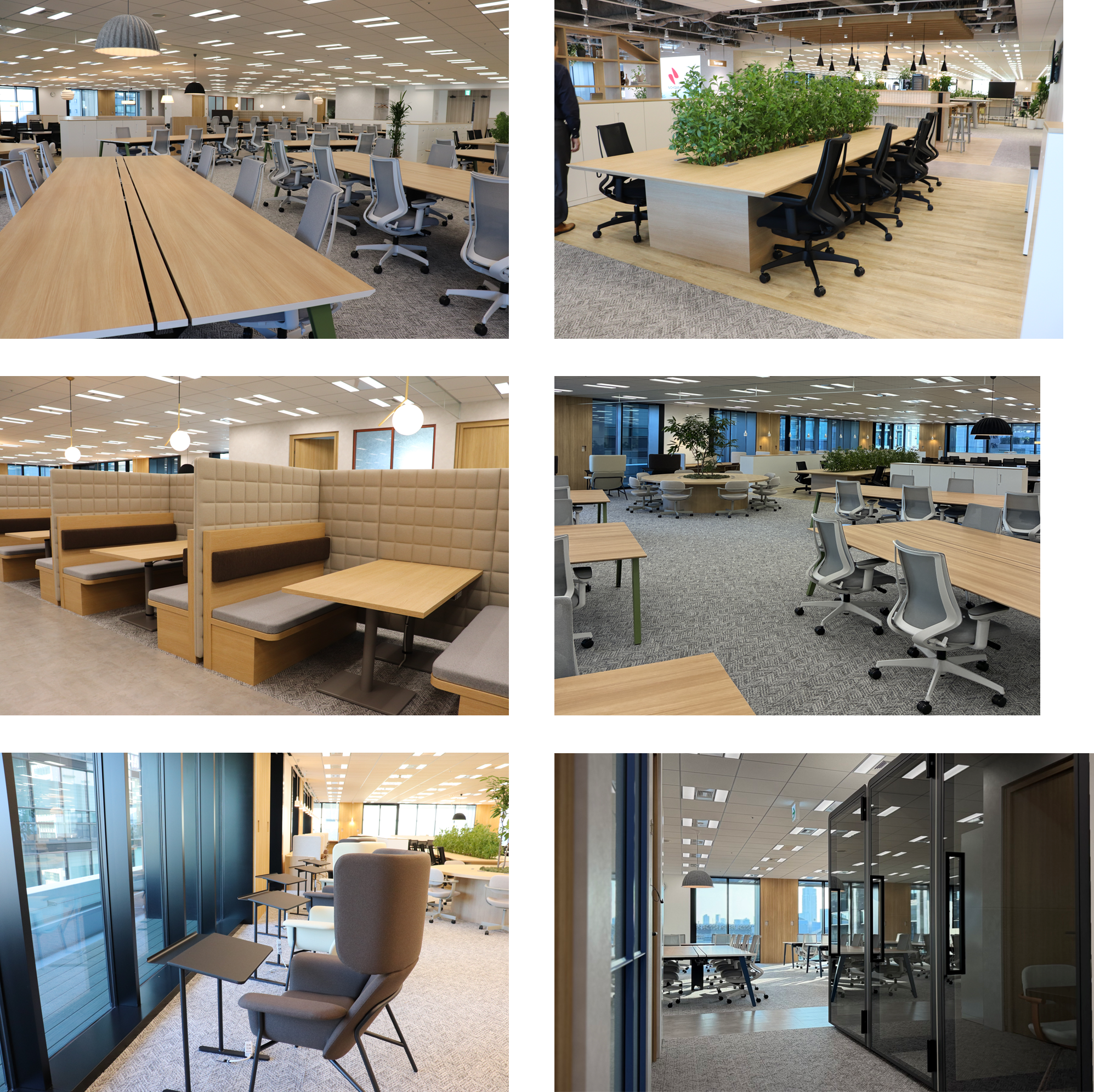 ABW(Activity Based Working/アクティビティ・ベースド・ワーキング)に基づき 、業務内容やコンディションに応じて最適な働く時間と場所を社員が主体的に選択できる、自立した働き方と多様な空間を提供します。