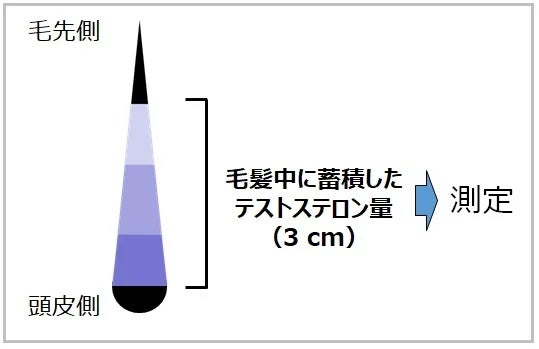 毛髪テストステロンは血中テストステロンに比較して日内変動の影響が小さく、長期間の平均的なテストステロン値を評価することが可能と言われています。本研究の毛髪テストステロン測定は株式会社あすか製薬メディカルのホルモン量測定キット(テストステロン)を用いて実施しました。