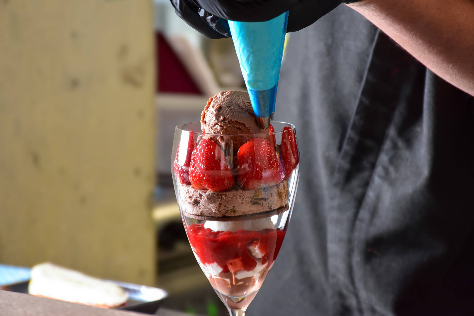 目の前で仕上げる、冬限定の「苺×チョコレート」のパフェ