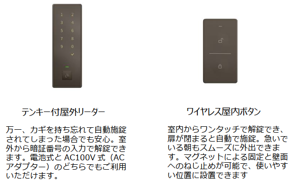全仕様で「FamiLock」を搭載可能にしたほか、「テンキー付屋外リーダー」、「ワイヤレス屋内ボタン」を追加