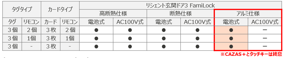 今まで「FamiLock」をお選び頂けなかったアルミ仕様の電池式にて選択可能に。