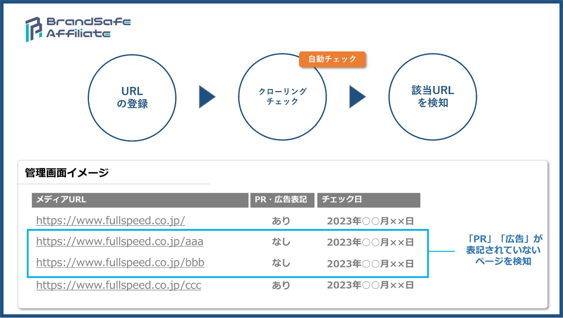 株式会社フルスピードではアフィリエイト記事の管理チェックツール「ブランドセーフアフィリエイト」を提供しています。