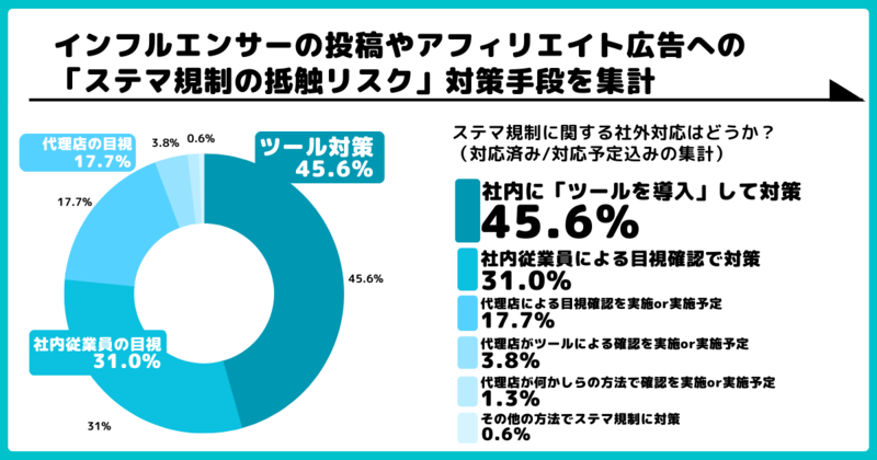 ・このような理由から、ツールを活用したステマ規制対策を行っている企業が45.6%にのぼる。