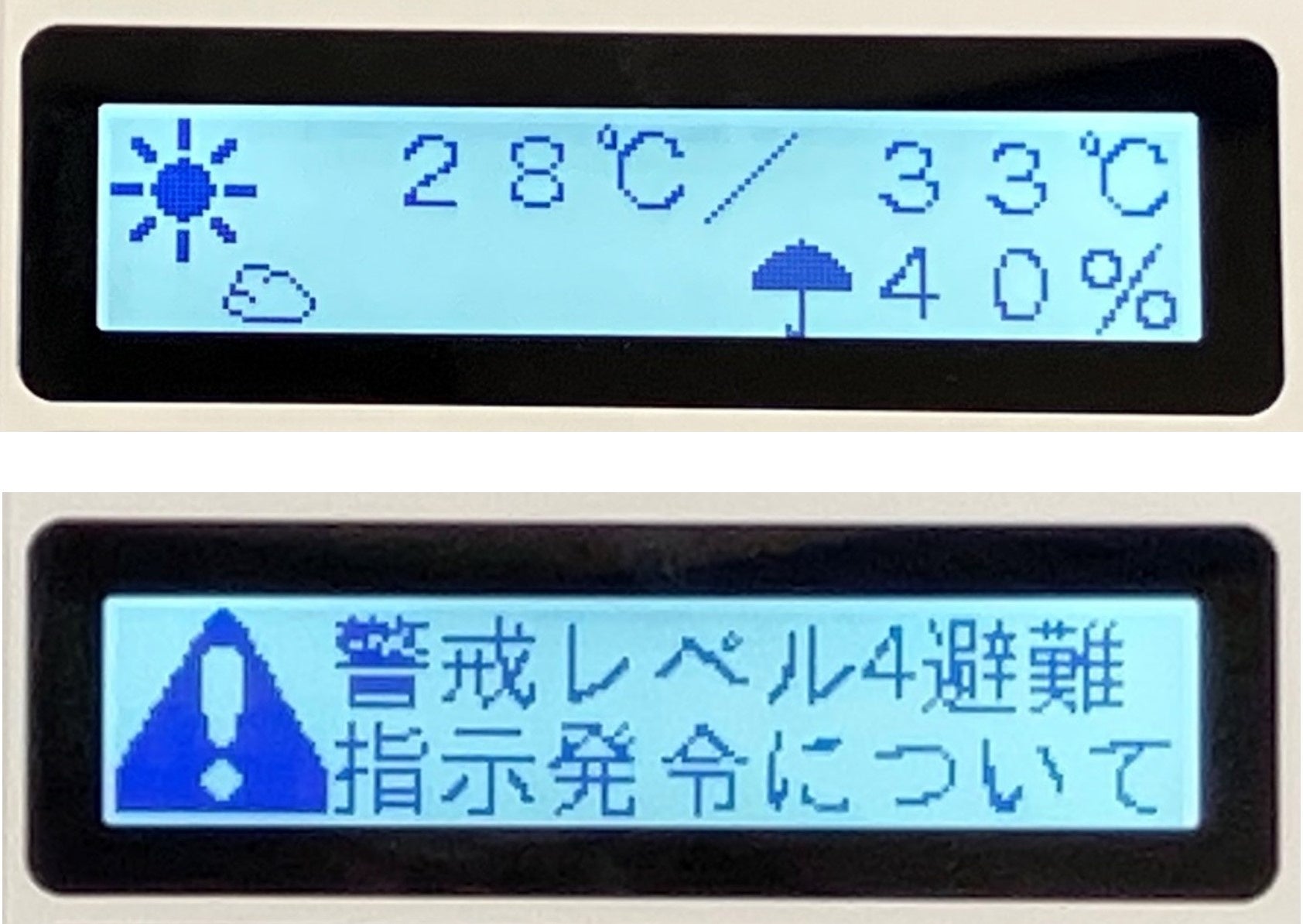 また、ディスプレイには自治体から配信する防災・行政情報だけではなく、時刻や天気予報など、日常的に利用する情報を表示することで、平時からご利用いただけます。
