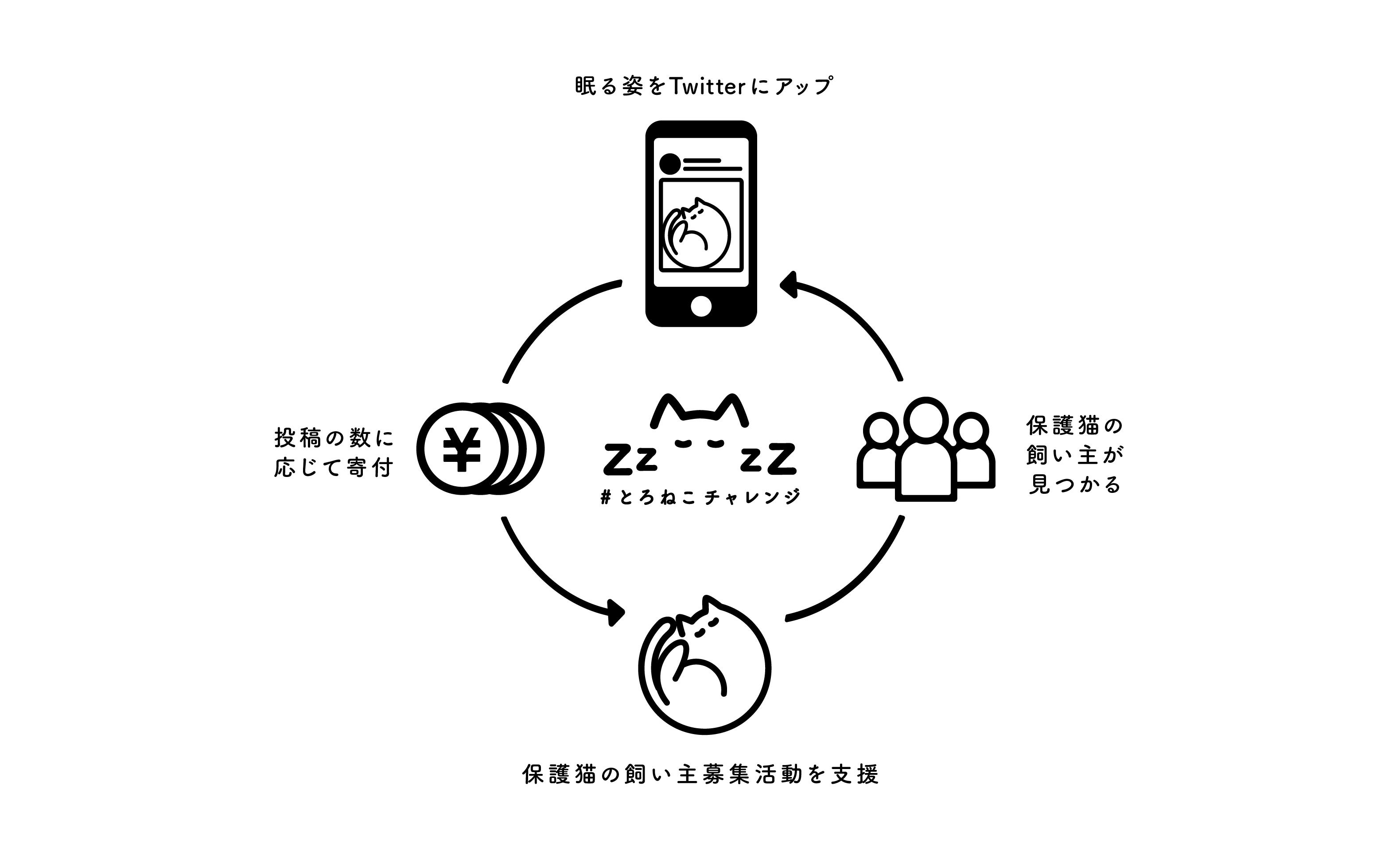「#とろねこチャレンジ」は、この事実をたくさんの人に知ってもらい、投稿数に応じた寄付金を「保護猫の飼い主募集活動」に活用することで引き取り手を増やし、その分の殺処分を減らすために始まりました。