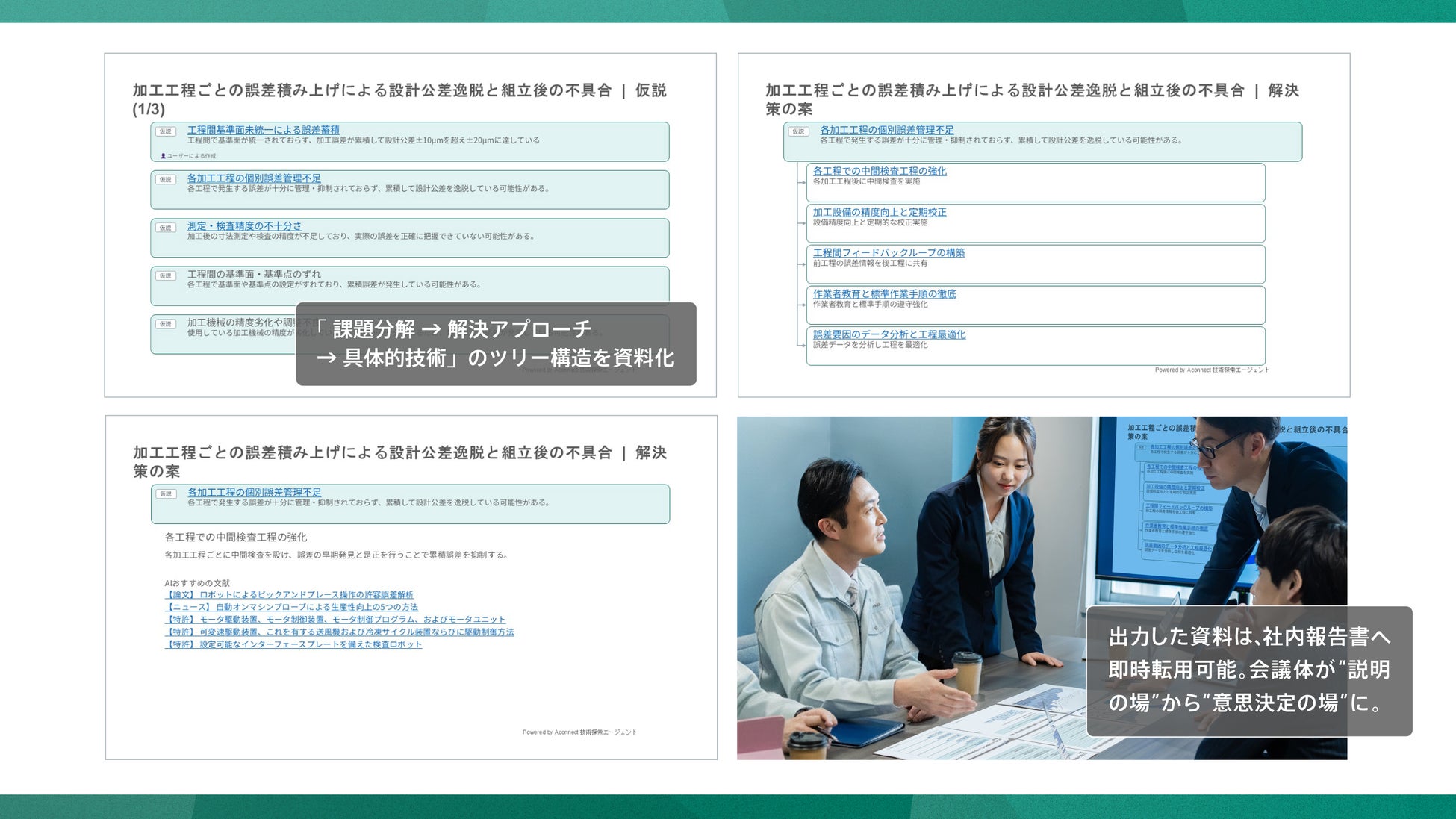 製造業向けAIエージェント「Aconnect」 開発者の思考過程をロジックツリーにしてPowerPointで出力可能に