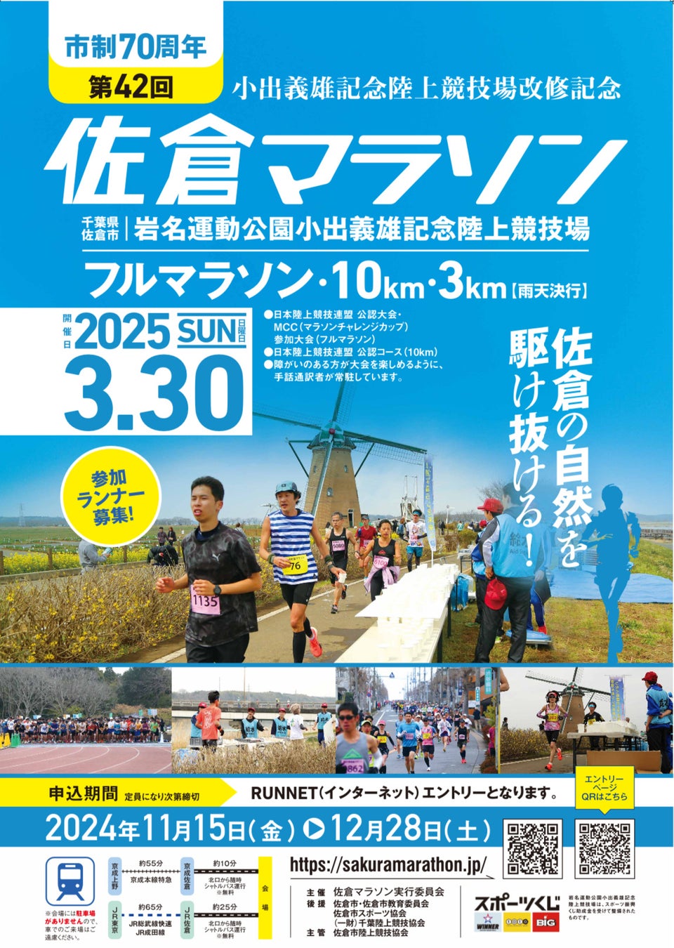【千葉県佐倉市】『市制70周年 第42回佐倉マラソン~小出義雄記念陸上競技場改修記念~』ランナー募集中(12/28申込締切)