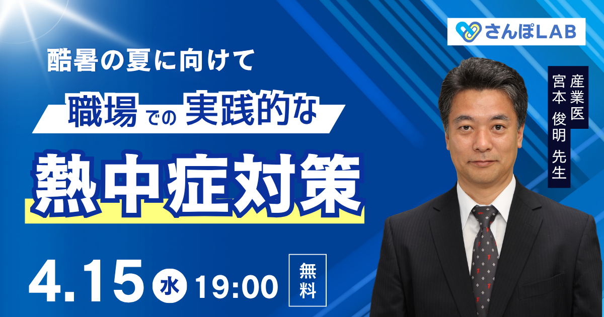 第一弾として、産業医科大学産業衛生教授、帝京大学公衆衛生大学院非常勤講師、労働衛生コンサルタントである宮本 俊明氏が登壇する熱中症対策義務化に関するウェビナー開催が決定しております。