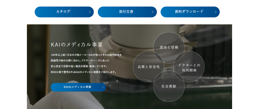 KAIグループのサイトでは以前より医療器製品を紹介してまいりましたが、今回は品質に関する情報やメディカル事業のビジョンも公開し、大幅にリニューアルをいたしました。
