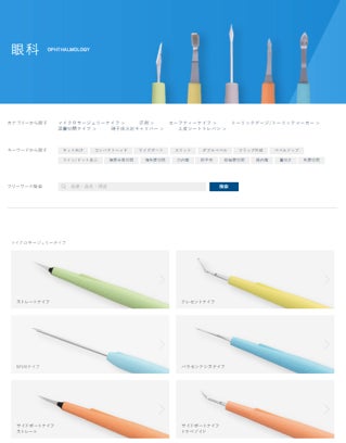 白内障や緑内障などの症例、切開方法などで製品検索が可能に。マルチデバイス対応でスマートデバイスでも見やすく表示されます。