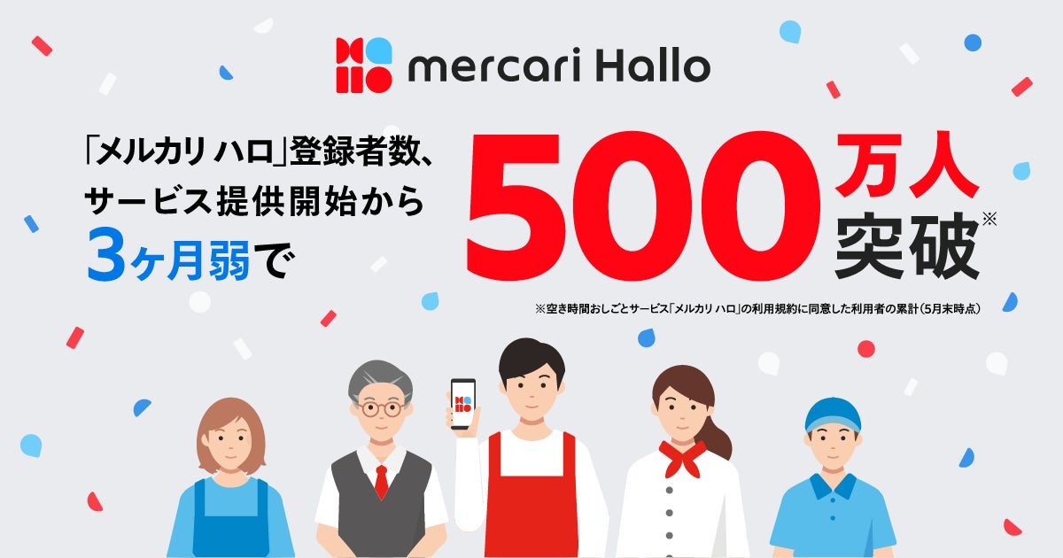 空き時間おしごとサービス「メルカリ ハロ」、サービス提供開始から3ヶ月弱で登録者数500万人を突破