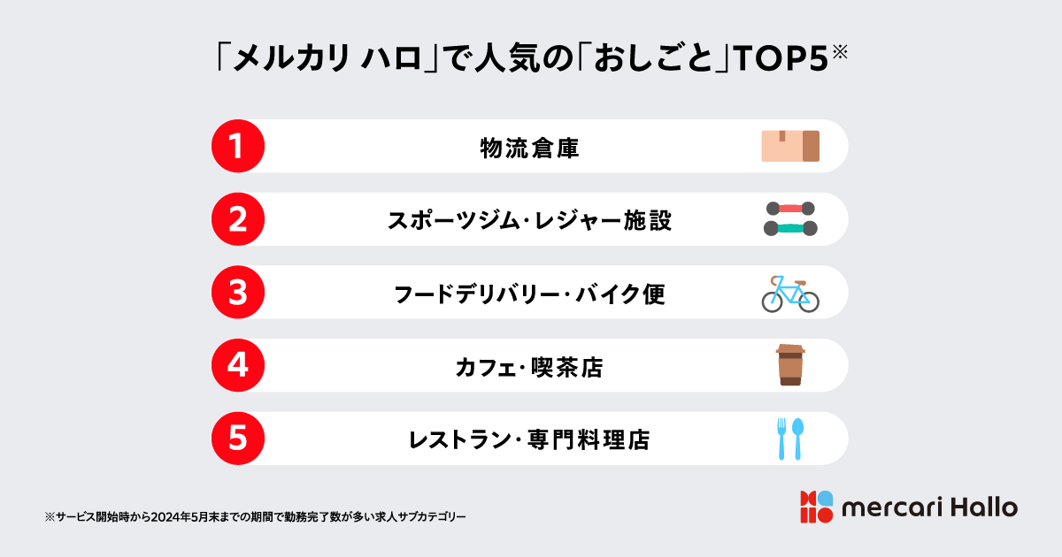7.「メルカリ ハロ」で人気のお仕事:物流倉庫やスポーツジムがトップに