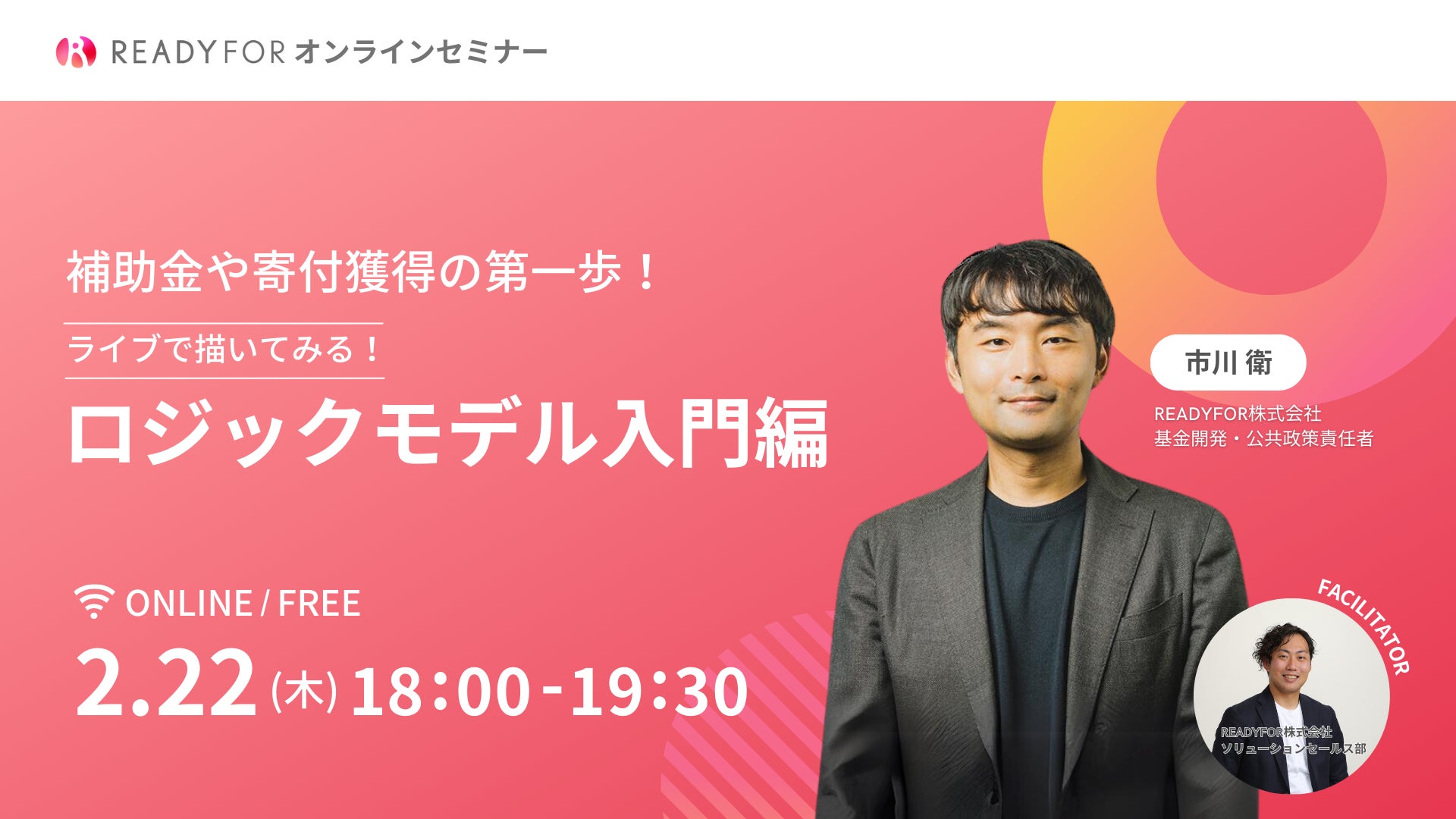 日本初・国内最大級のクラウドファンディングサービス「READYFOR」を運営するREADYFOR株式会社は、2024年2月22日(木)に「補助金や寄付獲得の第一歩!ライブで描いてみる! ロジックモデル入門編」を開催いたします。
