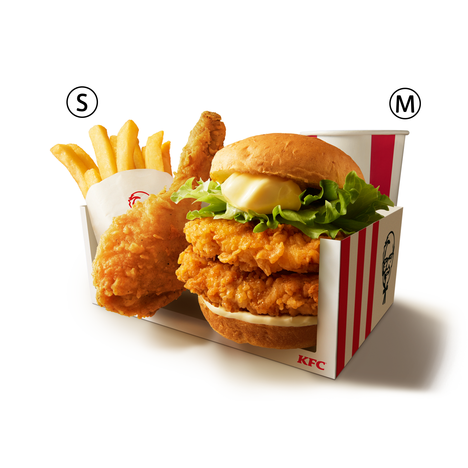 〔ダブルチキンフィレバーガー、オリジナルチキン、ポテト(S)、ドリンク(M)〕