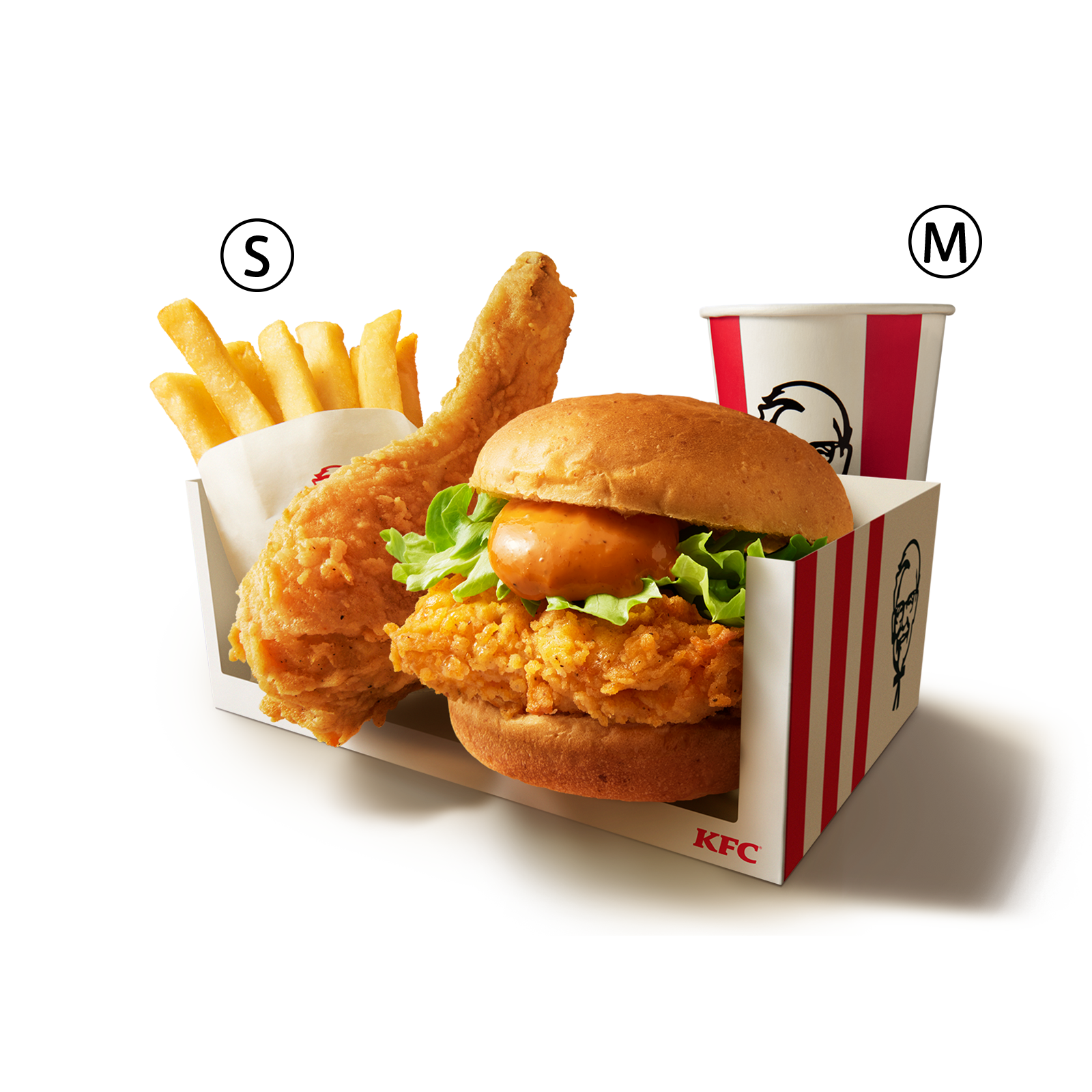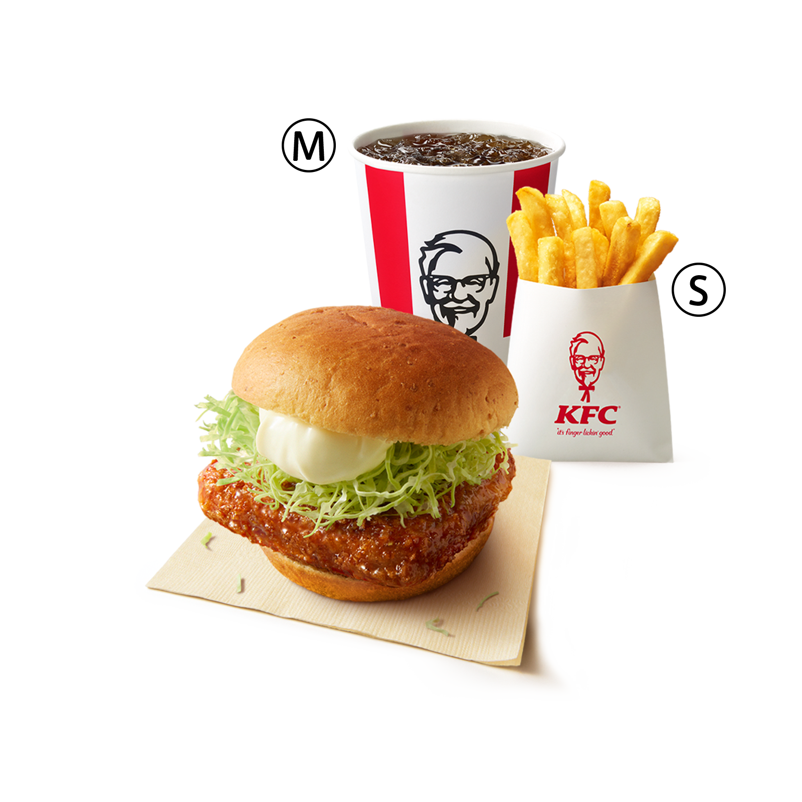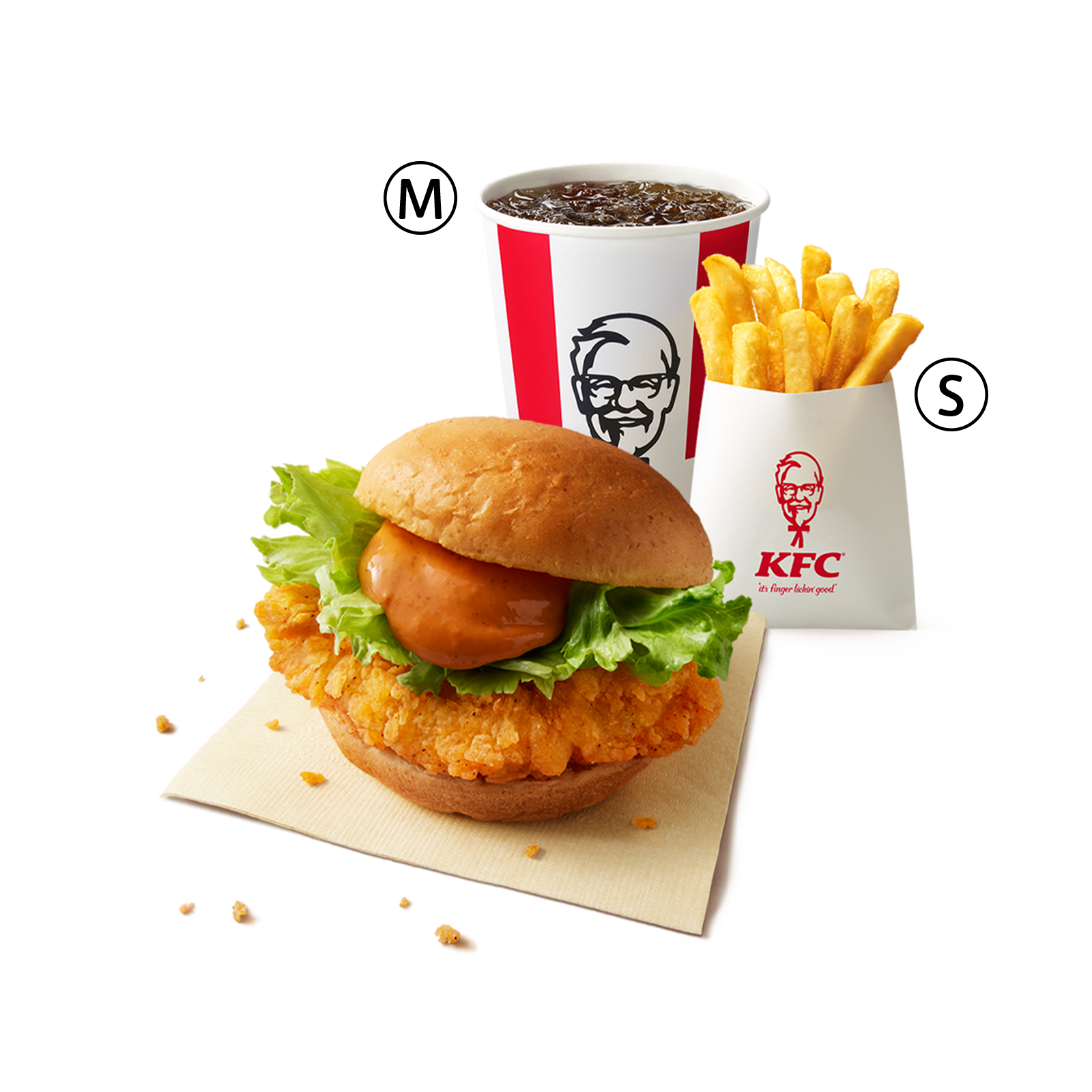 〔辛口チキンフィレバーガー、オリジナルチキン、ポテト(S)、ドリンク(M)〕