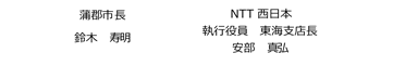 今後、蒲郡市とNTT西日本が連携し、ICT・マイナンバーカードを活用した市民サービスの向上、地域社会の活性化及び「誰一人取り残されない」社会の実現に向けた具体策を共に検討してまいります。