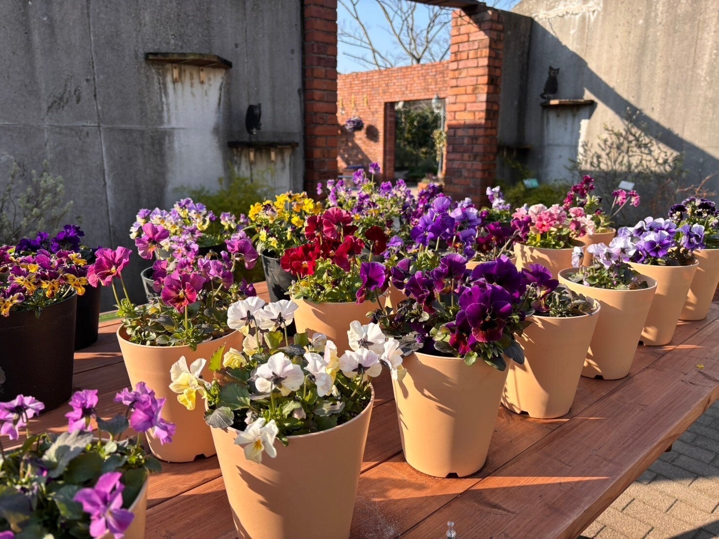 今年初開催!九州各地の個人育種家や花苗生産農家による、育種ビオラを中心に集めました。寄せ植え、ハンギング、地植えなど、展示方法も様々。繊細で個性あふれる造形・色彩を見比べながら観賞してみてください。