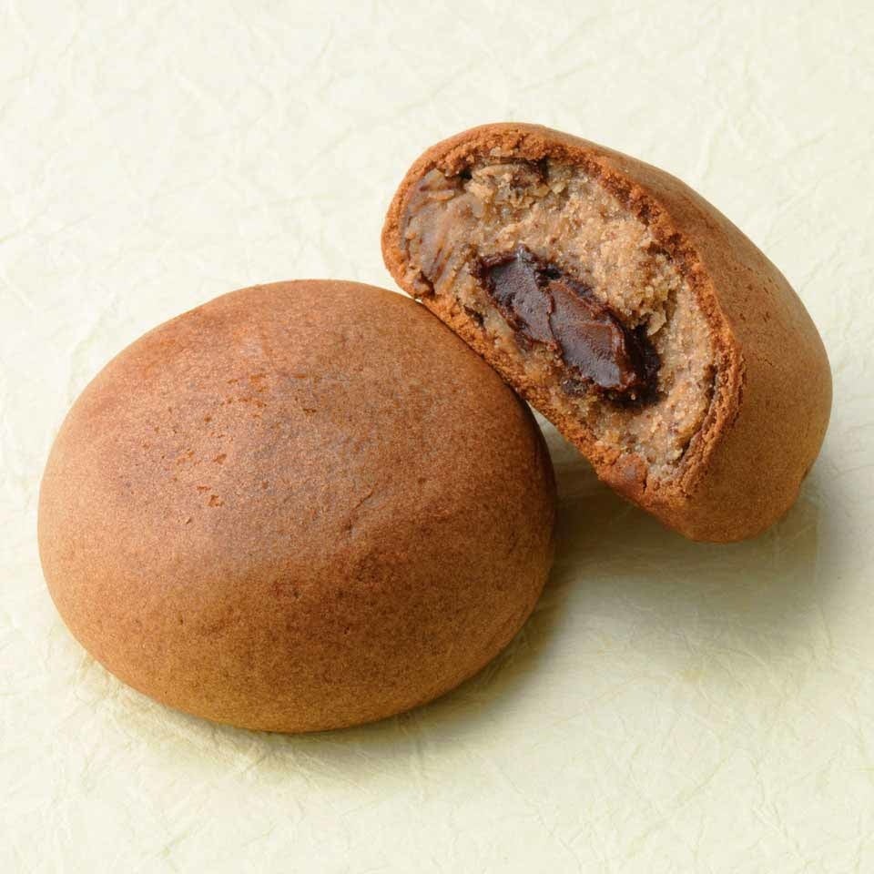 皮や中の白あんにチョコレートを練り込み、中心にやわらかなチョコレートクリームを入れました。あんには刻んだチョコレートも入れています。甘すぎず、親しみやすいおいしさが魅力。