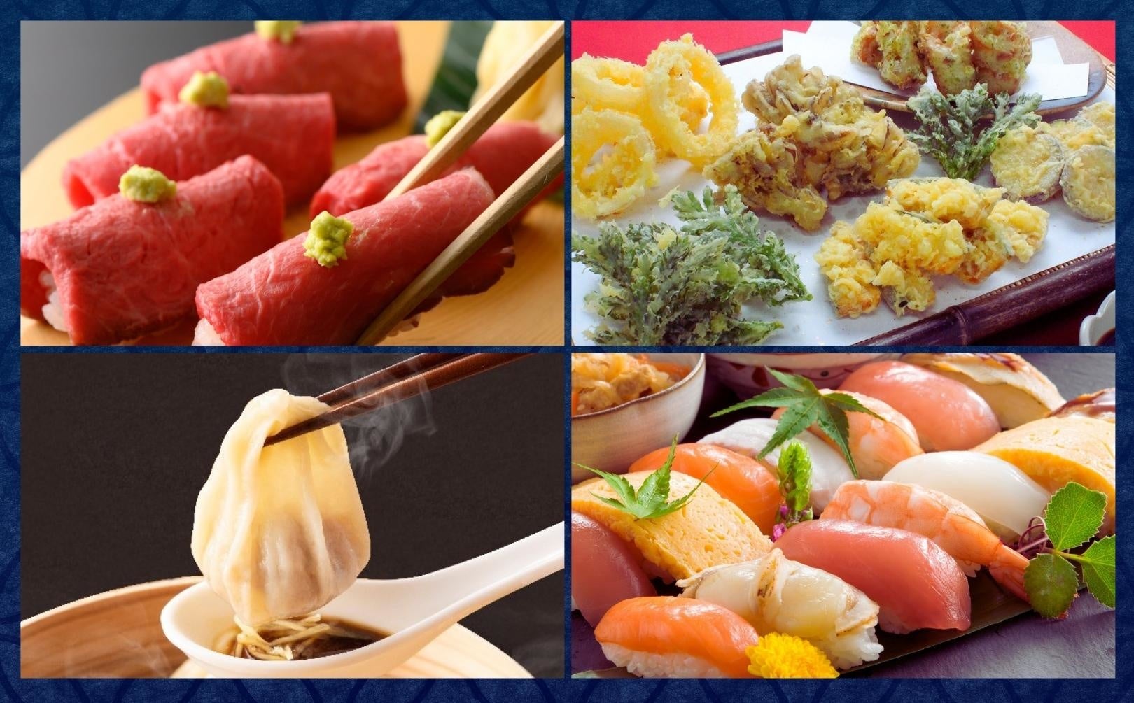 そして、しゃぶしゃぶ、生そばのほかにも、揚げたての天ぷらや、まぐろ、サーモンなどの人気ラインナップを取り揃えた握り寿司、肉汁たっぷりの熱々スープが堪能できる自家製小籠包など、スペシャルな食べ放題メニューが勢ぞろい!