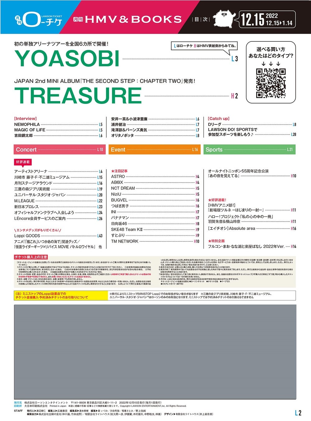 【本日発行】フリーペーパー『月刊ローチケ/月刊HMV&BOOKS』12月15日号の表紙・巻頭特集は「YOASOBI」&「TREASURE」!