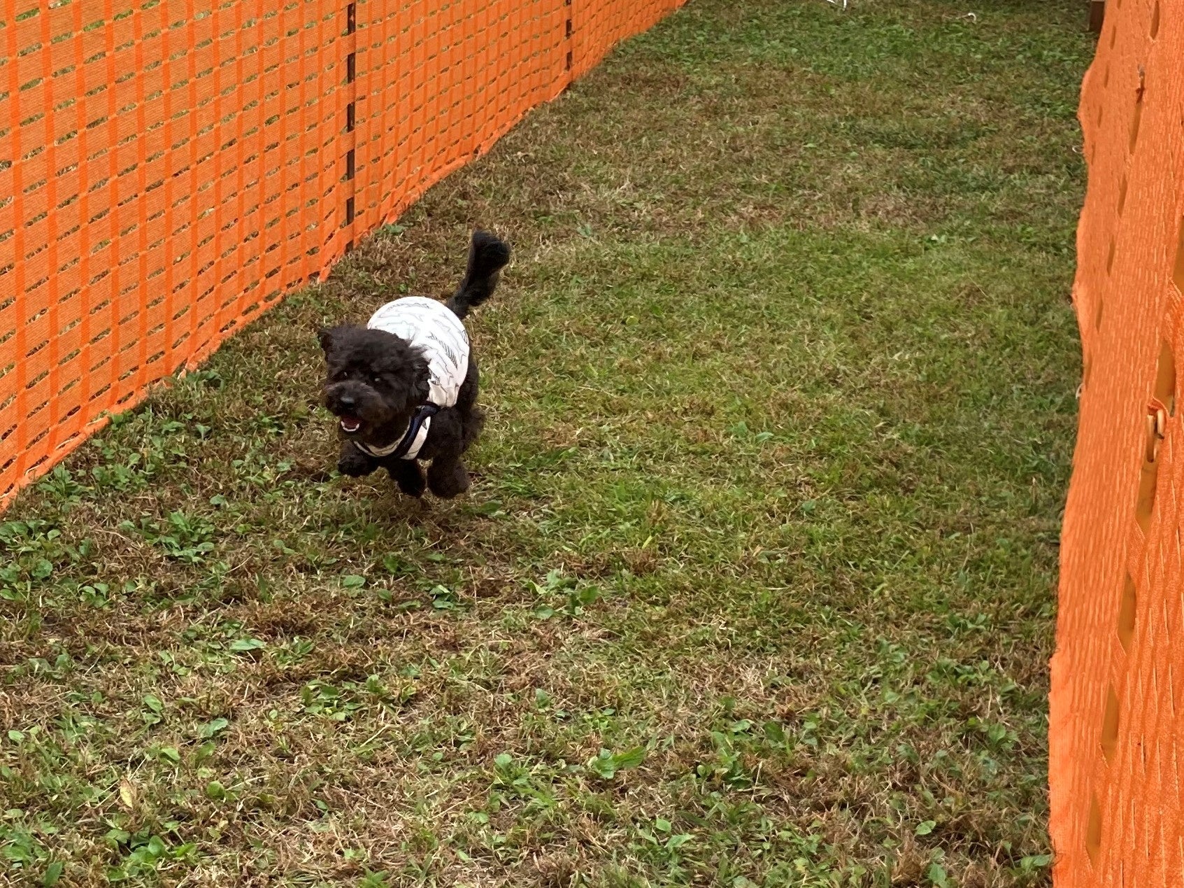 タイムを競う「ファストレース」と、申告タイムに誰が一番近いかを競う「ダイヤルインレース」をご用意しています。距離は直線50mで、1頭につき1つのコースを利用可能。大勢で走ると緊張してしまうワンちゃんでも完走しやすいので、初めての方もお気軽にご参加ください。運動不足解消にもおススメです。参加いただいたすべてのワンちゃんに記録証を進呈します。