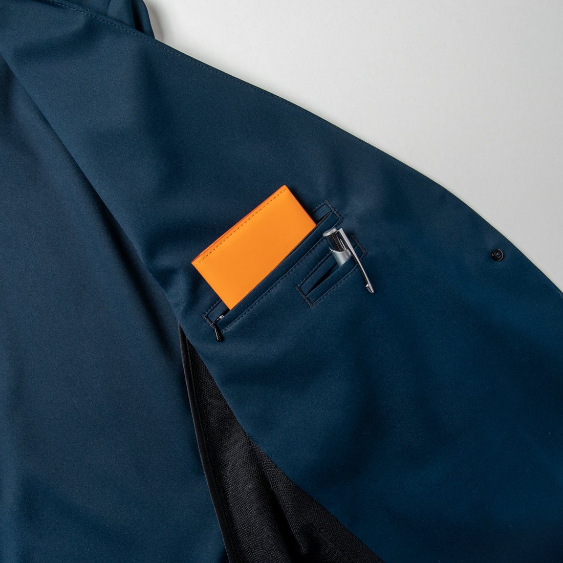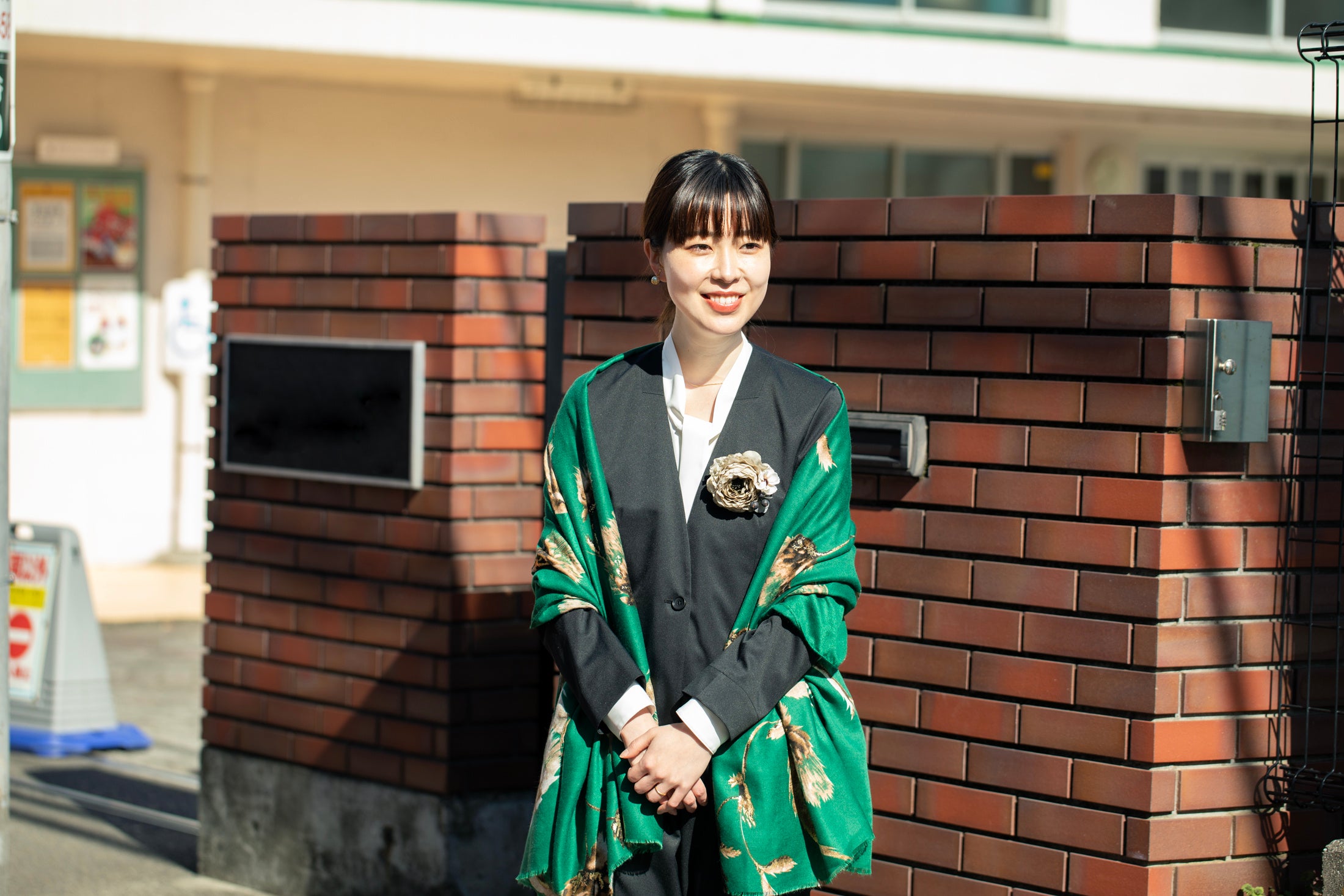 先生の普段着は動きやすさ優先のためカジュアル寄りが多いのですが、参観や懇談など、ジャケット着用の機会も割と頻繁にあります。たくさんのシーンで着ていただけるように、極力のシンプルデザインにしました。スカーフやインナーでアレンジしたり、ネイビーと黒の組み合わせを変えたりすることで全く違うイメージにできるため、例えば長い家庭訪問期間もこれで乗り切れます。
